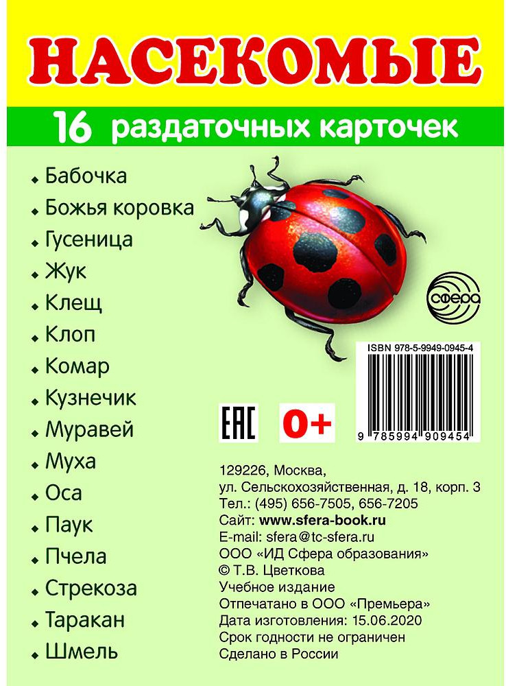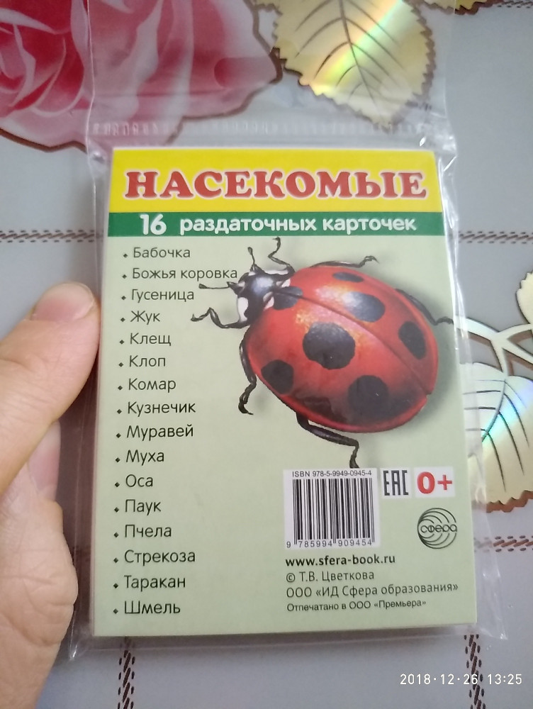 Конечно, достаточно много разных видов для моего сына (1,5мес), но мы используем только что можно пока понять, остальные убрали. Удобно использовать с тематическим плакатом, сопоставлять. На обратной стороне карточки написано название насекомого на русском (прописью) и на английском (печатными) - как вариант для изучения языков.