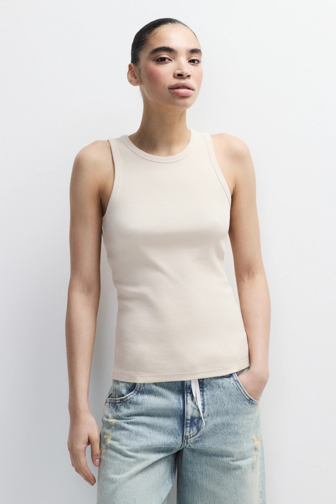 - Женская майка облегающего кроя из мягкой, эластичной и очень приятной к телу хлопковой ткани в мелкий рубчик - Широкие нерегулируемые бретели. Высокий округлый вырез горловины без воротника. Закрытая спинка, прямой нижний край - Однотонная майка в пастельных и ярких оттенках для любого образа и настроения. Основа основ и мастхэв любого гардероба: базовая майка на широких бретельках идеально подойдет на любой случай жизни. Универсальная и суперудобная майка под пиджак в офис, для занятий спортом, повседневных луков и просто отдыха дома. Сочетай однотонную майку с любым низом на свой вкус и создавай расслабленные и стильные кэжуал-луки, в которых тебе будет максимально удобно. Носи майку отдельно или используй в качестве основы для трендовых многослойных луков с оверсайз-рубашками.