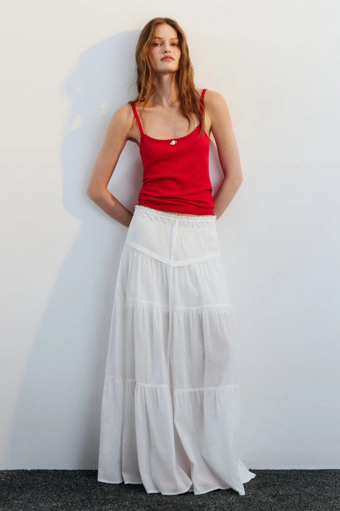 - Женская майка облегающего кроя из дышащей и мягкой ажурной ткани на основе вискозы - Глубокий вырез на груди с декоративным цветочком, низкая линия спинки. Тонкие кружевные бретели. Волнистый нижний край без разрезов - Однотонная ажурная майка с цветочком для летних луков, наполненных ностальгией по отдыху у бабушки в деревне. Сочетай майку на бретелях с комфортным низом из новой коллекции Befree и создавай образы на любой случай жизни. Используй эту майку из ажурной ткани в качестве основы трендовых многослойных образов. Разбавь майкой с цветком строгие офисные образы, чтобы наполнить духом свободой даже рабочие будни. Носи майку с широким низом на низкой талии для создания трендовых y2k аутфитов.