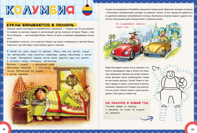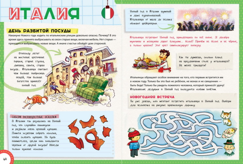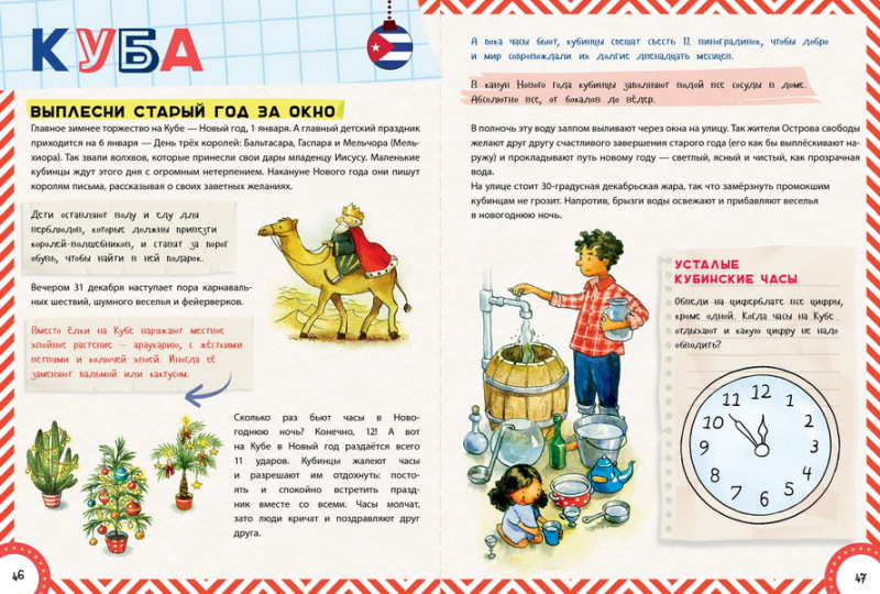 Это энциклопедия про Новый год. Очень любопытно узнать, как встречают Новый год в разных странах. А также есть интересные развивающие задания, а в конце книги предлагается написать письмо Дед Морозу. Книгу покупали для 10 летней девочки, но и доча 4,6 лет ее с огромным интересом послушала и просмотрела. Интересно и познавательно даже для взрослых.