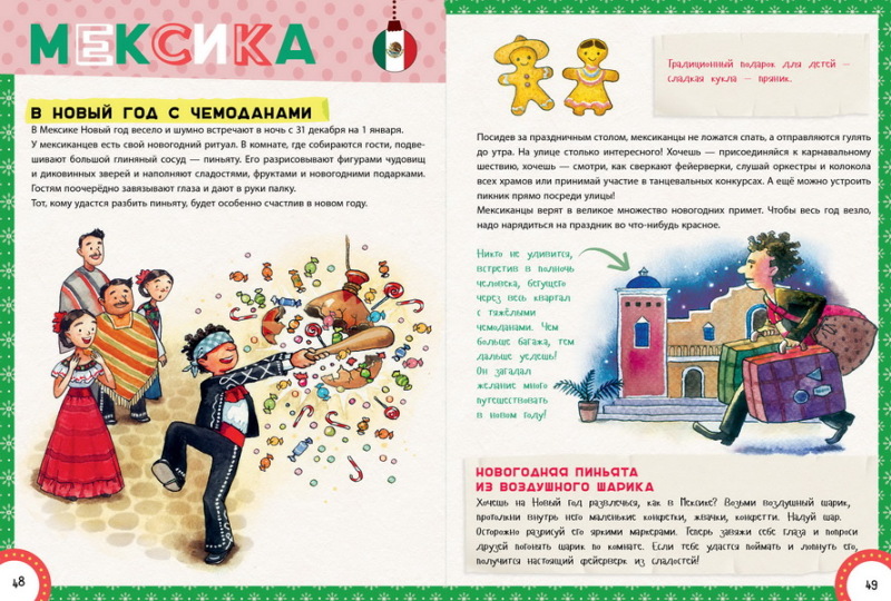 Замечательная книга, в качестве подарка на Новый год прекрасна. Прочитали ее и загорелись перенять у разных народов новогодние традиции, так встречать будет веселее