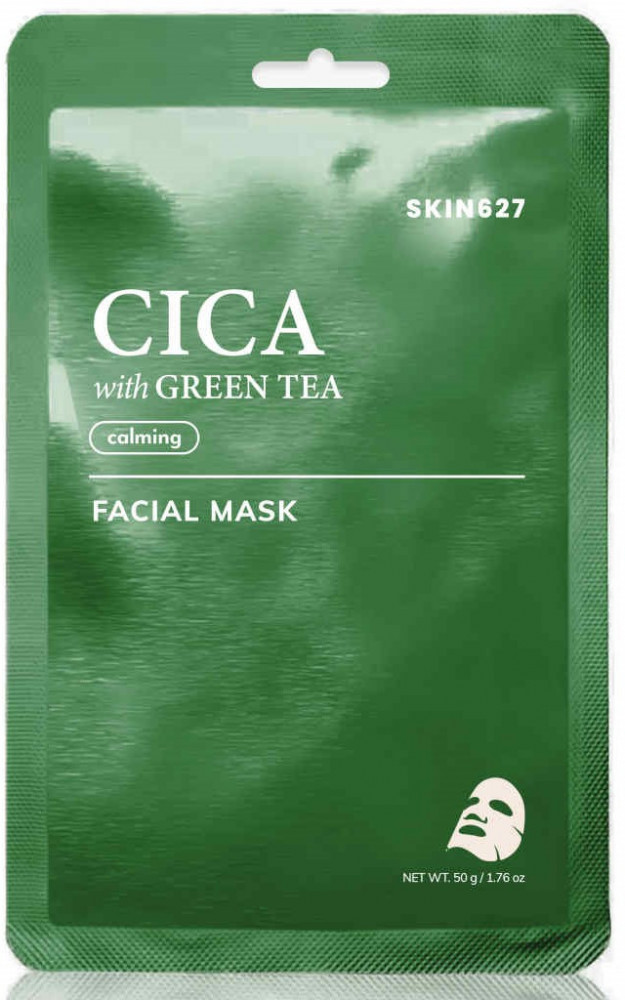 Skin627 Маска для лица тканевая успокаивающая «Центелла и зеленый чай. Cica with Green Tea Calming Facial Mask»