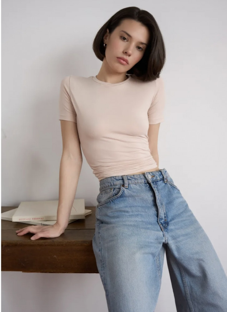 Отличная футболка,насыщенный красивый ,нежный цвет.