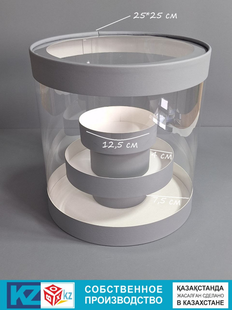 💳 Оплатить за товар можно при получении 🇰🇿 Есть бесплатная доставка по Казахстану 🎁 Копите бонусы с каждой покупки Подарочная коробка-тубус — стильная цилиндрическая упаковка, идеально подходящая для оформления эксклюзивных композиций и ценных подарков. Изделие выполнено в размере 25 см в высоту и 25 см в диаметре, что делает его достаточно вместительным и визуально эффектным. Внутри предусмотрена двухуровневая конструкция: первый уровень — 7,5 см от колбы до борта, второй — 4 см, что позволяет надежно зафиксировать содержимое и создать многоуровневую композицию. Колба, размещённая по центру, имеет диаметр верхней части 12,5 см, идеально вписываясь в геометрию упаковки. Такая коробка станет достойной оправой для цветов, декоративных элементов, десертов или косметических наборов. |