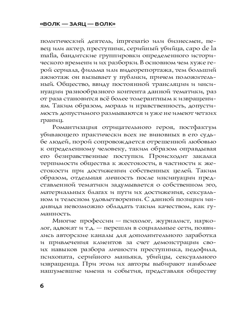 💳 Оплатить за товар можно при получении 🇰🇿 Есть бесплатная доставка по Казахстану от 1 дня 🎁 Копите бонусы с каждой покупки Серия: Научпоп современности В наше время восприимчивые люди склонны брать за ролевую модель героев фильмов, сериалов и игр. Человек, помещенный в центр сюжета, моментально становится звездой и предметом обсуждения. Но что, если героем становится преступник или серийный убийца? Подобная картина способна романтизировать в глазах зрителя то, на что наложено «вето», и может значительно пошатнуть моральный компас. |