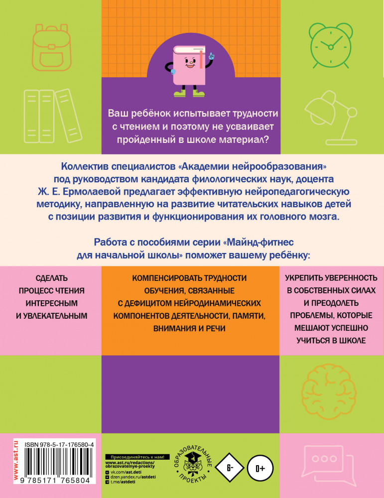 💳 Оплатить за товар можно при получении 🇰🇿 Есть бесплатная доставка по Казахстану от 1 дня 🎁 Копите бонусы с каждой покупки Серия: Майнд-фитнес для начальной школы Пособие серии «Майнд-фитнес для начальной школы» содержит материалы для обучающихся 2 класса, основанные на авторской нейропедагогической методике развития навыков чтения. Работа с тетрадью поможет им компенсировать трудности обучения, связанные с дефицитом нейродинамических компонентов деятельности, памяти, внимания и речи. Соответствует ФГОС, ФОП, ФРП НОО. |