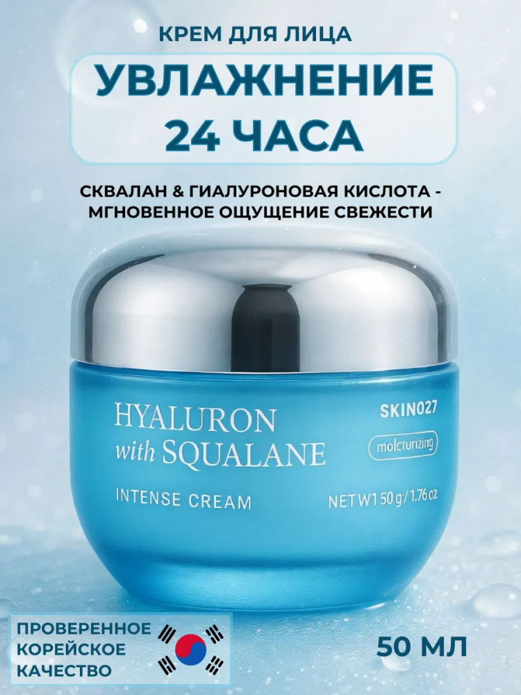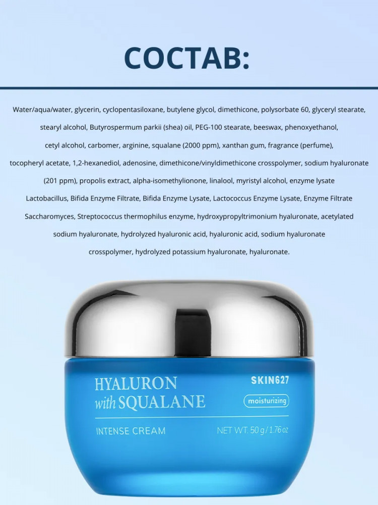 Skin627 Крем для лица с гиалуроновой кислотой и скваланом увлажняющий «Moisturizing intense cream with Hyaluron and Squalane»