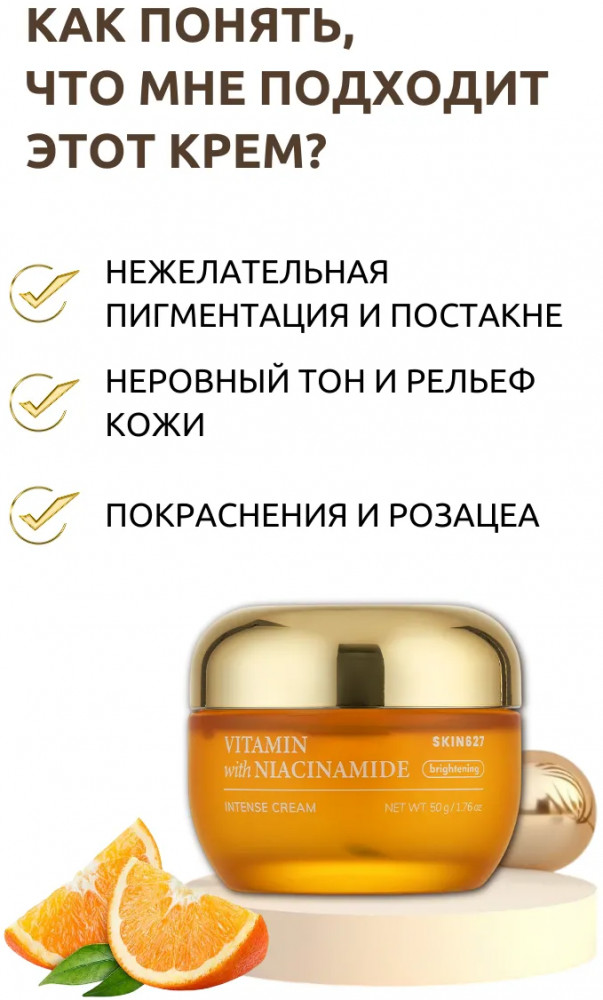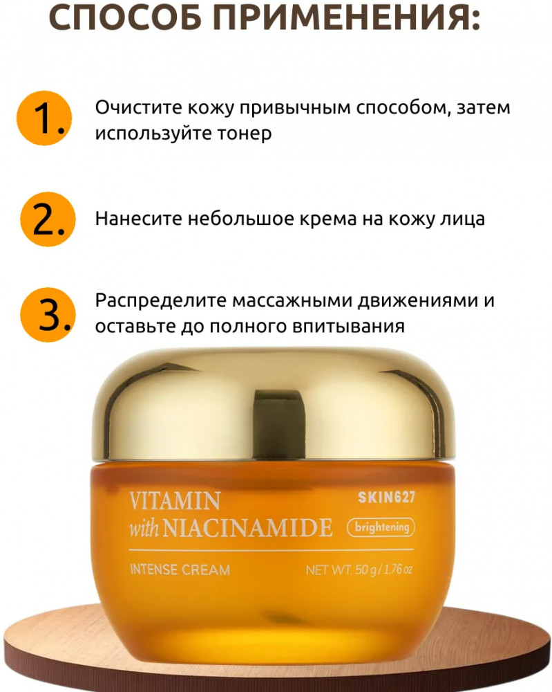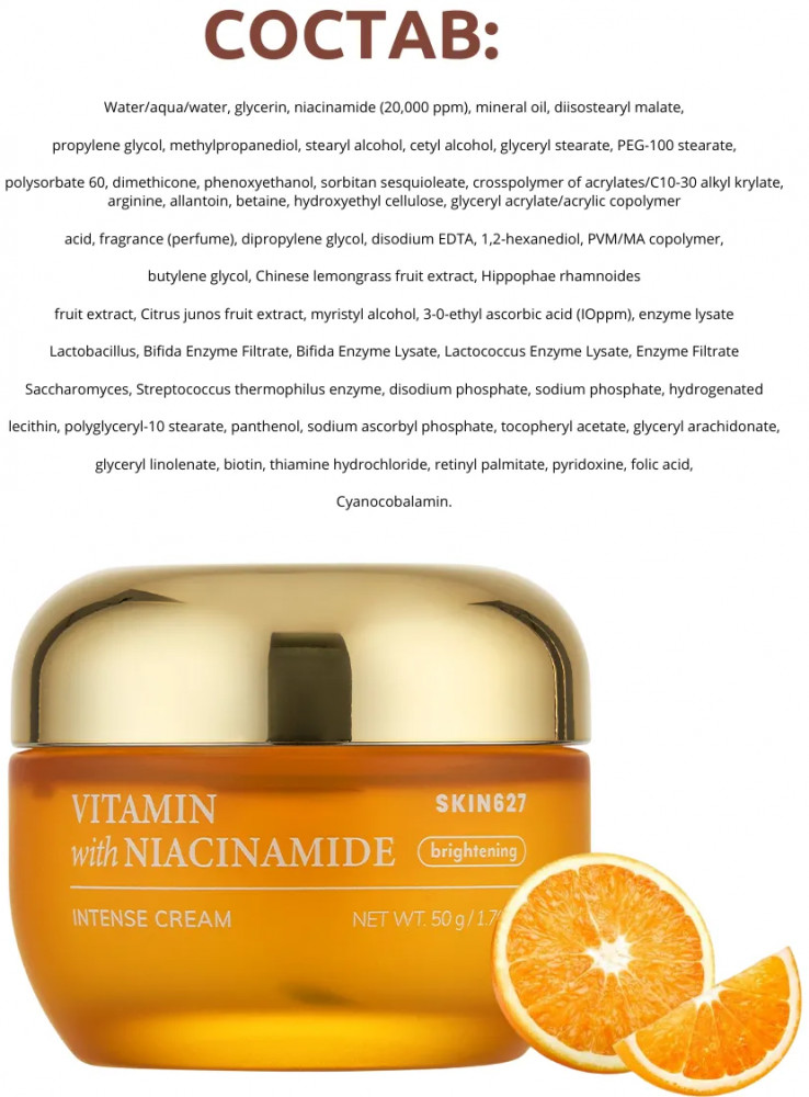 Skin627 Крем для лица с ниацинамидом и витамином С осветляющий «Brightening intense cream with Vitamin C and Niacinamide»