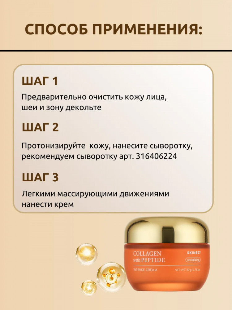 Skin627 Крем для лица с коллагеном и пептидами восстанавливающий «Revitalizing intense cream with Collagen and Peptide»