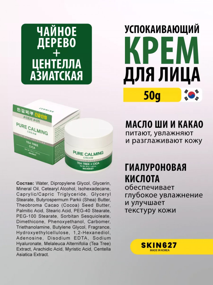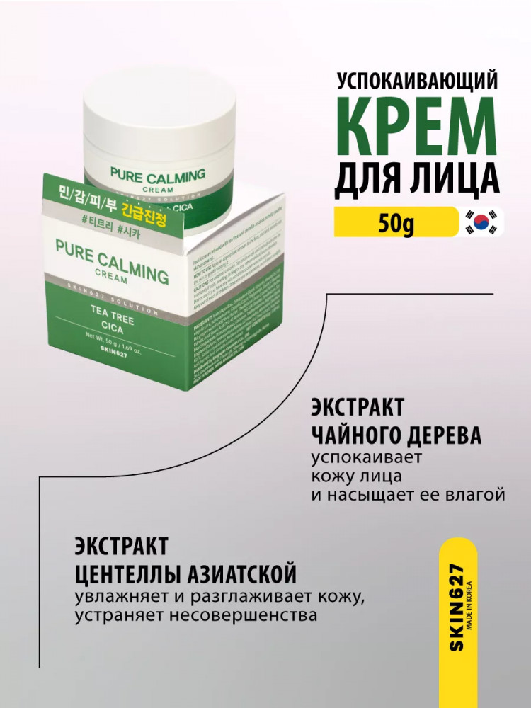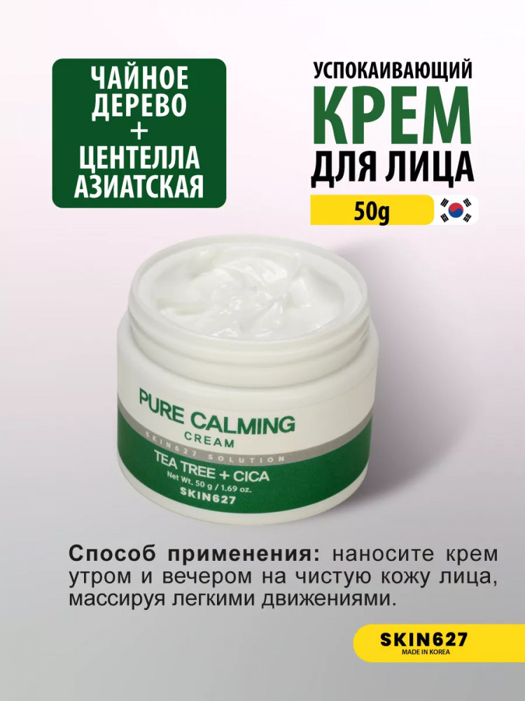 Skin627 Крем для лица с чайным деревом и центеллой успокаивающий «Pure Calming cream with Tea tree and Cica»