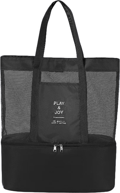 Эта многофункциональная пляжная сумка станет вашей незаменимой спутницей в летних поездках! Верхняя часть выполнена из прочной прозрачной сетки — она не задерживает песок и воду, отлично вентилируется и позволяет сразу видеть, где что лежит. Идеально для полотенец, купальников, кремов и других мелочей.