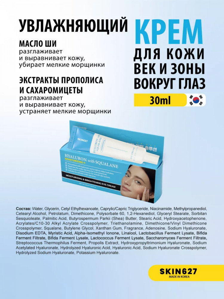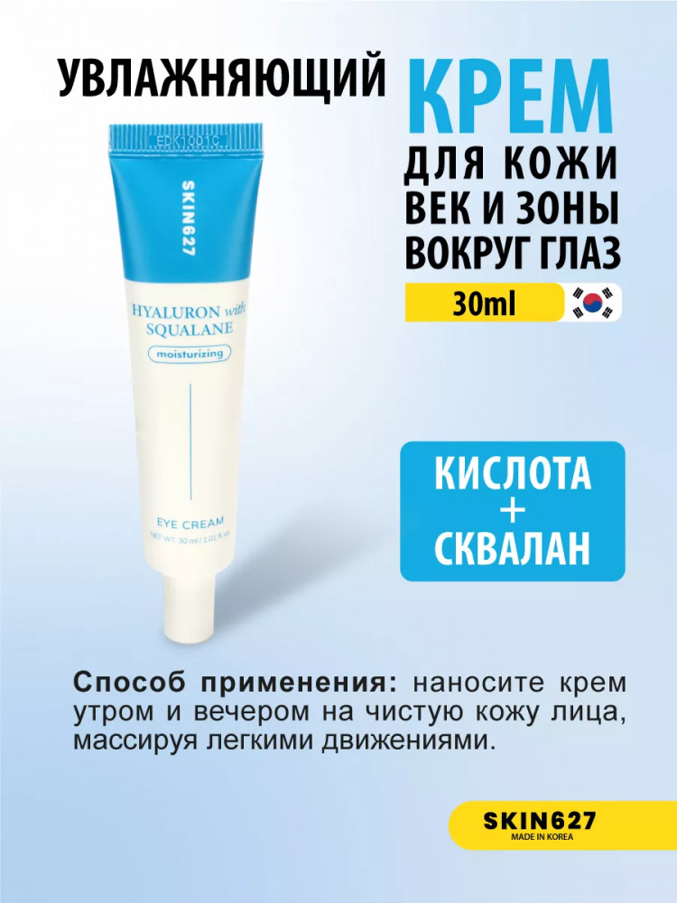 Skin627 Крем для век с гиалуроновой кислотой и скваланом увлажняющий «Moisturizing eye cream with Hyaluron and Squalane»
