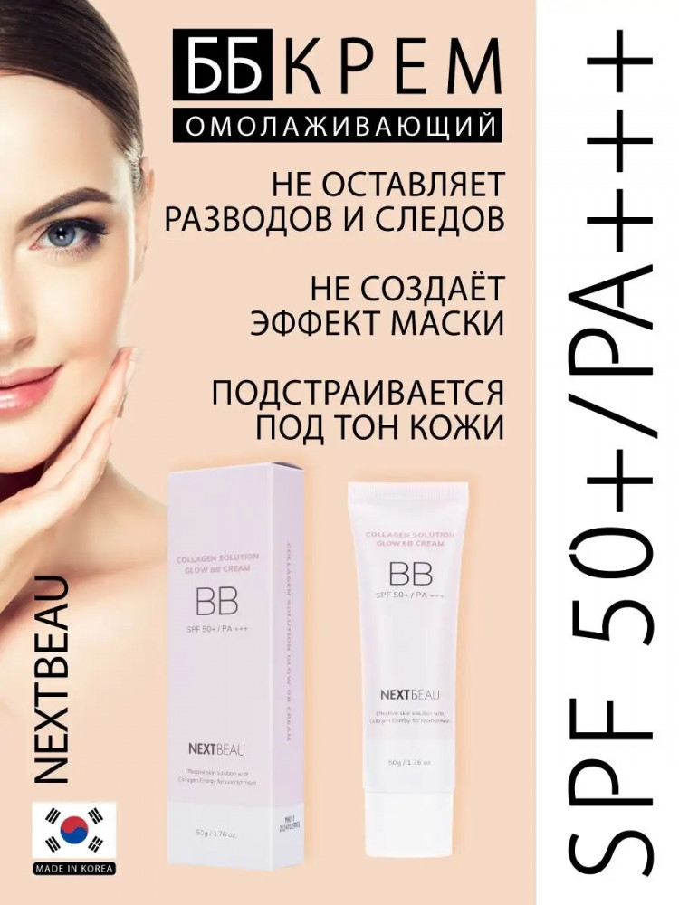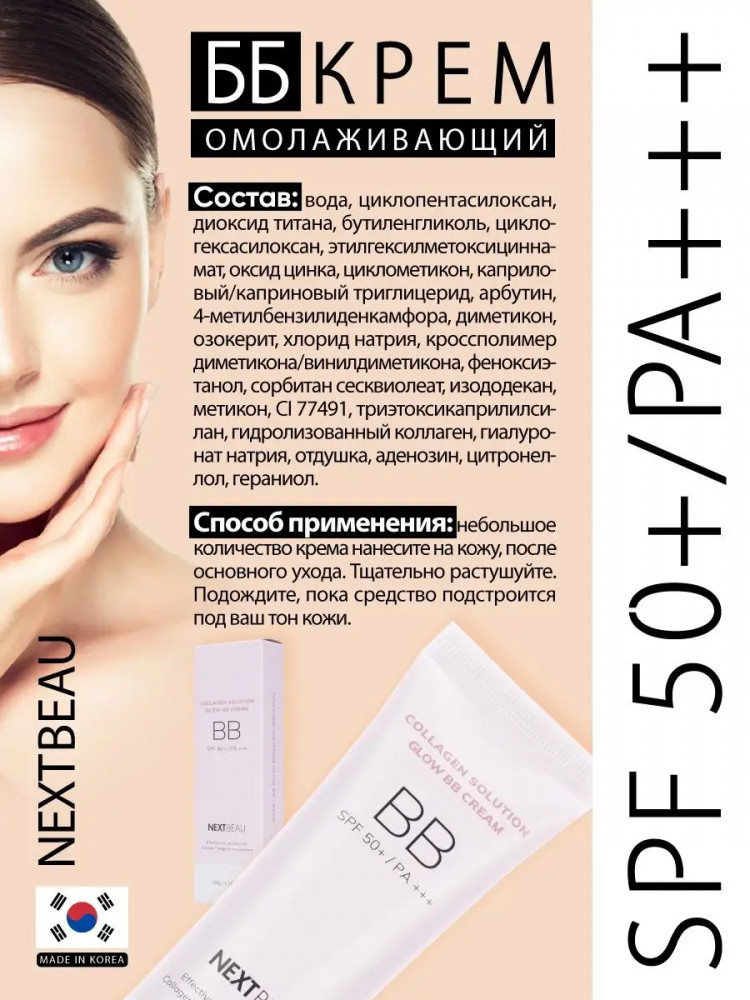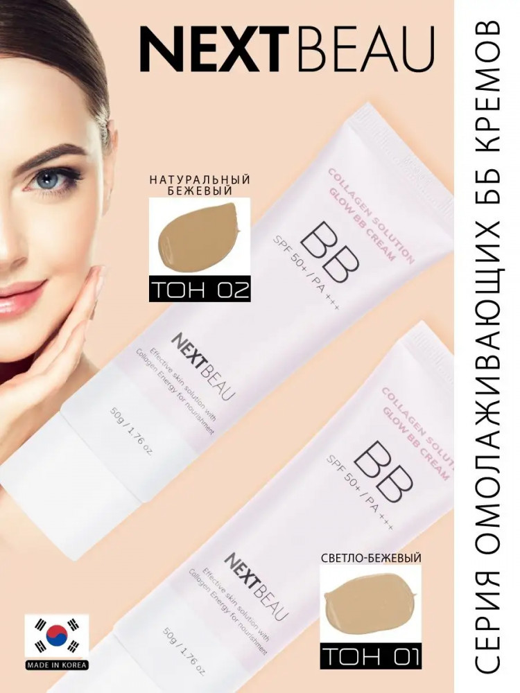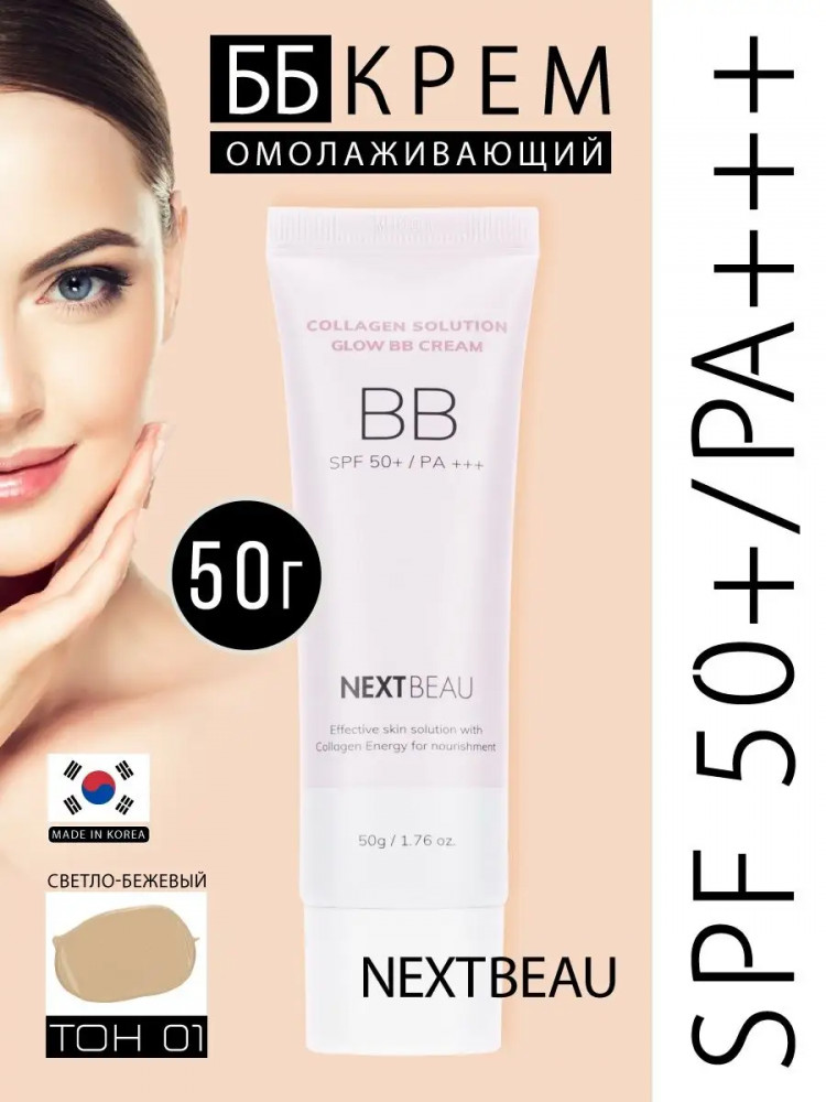 Nextbeau ВВ-крем для лица с гидролизованным коллагеном «Glow BB Cream» SPF 50+ PA+++, оттенок Light Beige