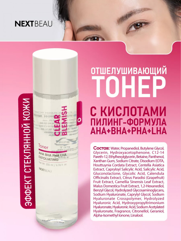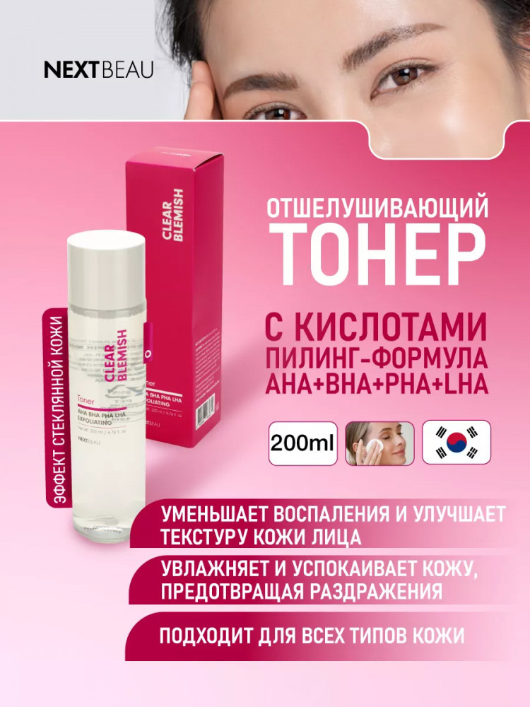 Nextbeau Тонер для проблемной кожи лица с кислотами отшелушивающий «Clear Blemish Exfoliating Toner»