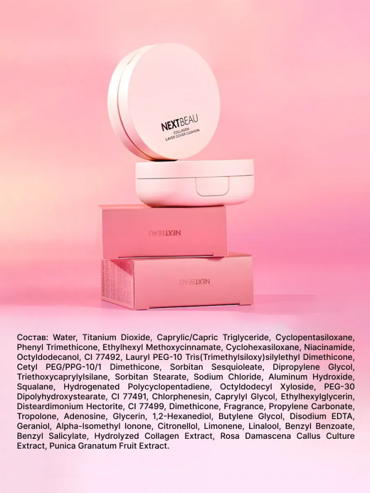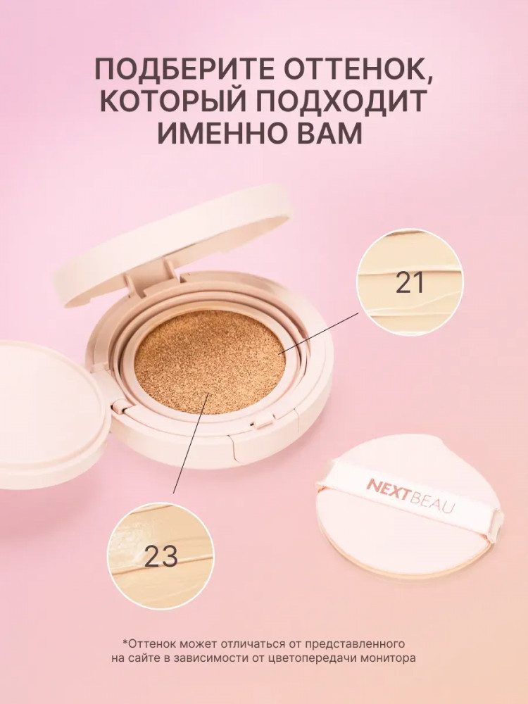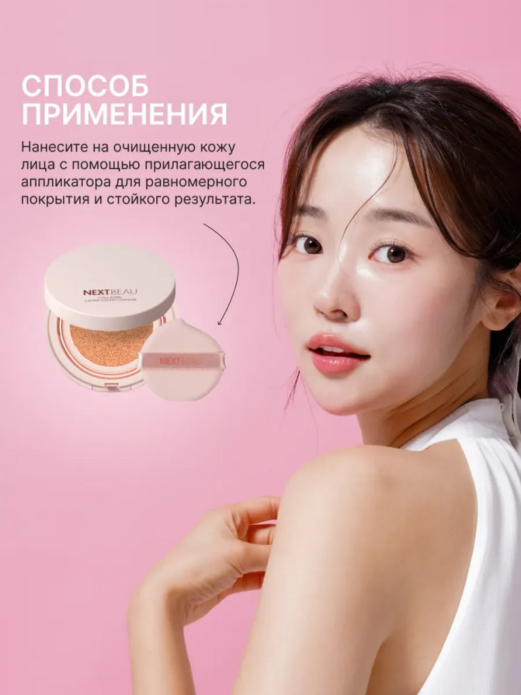 Nextbeau Кушон для лица тональный «Collagen Layer Cover Cushion» SPF50+ PA++++, оттенок 23 Beige
