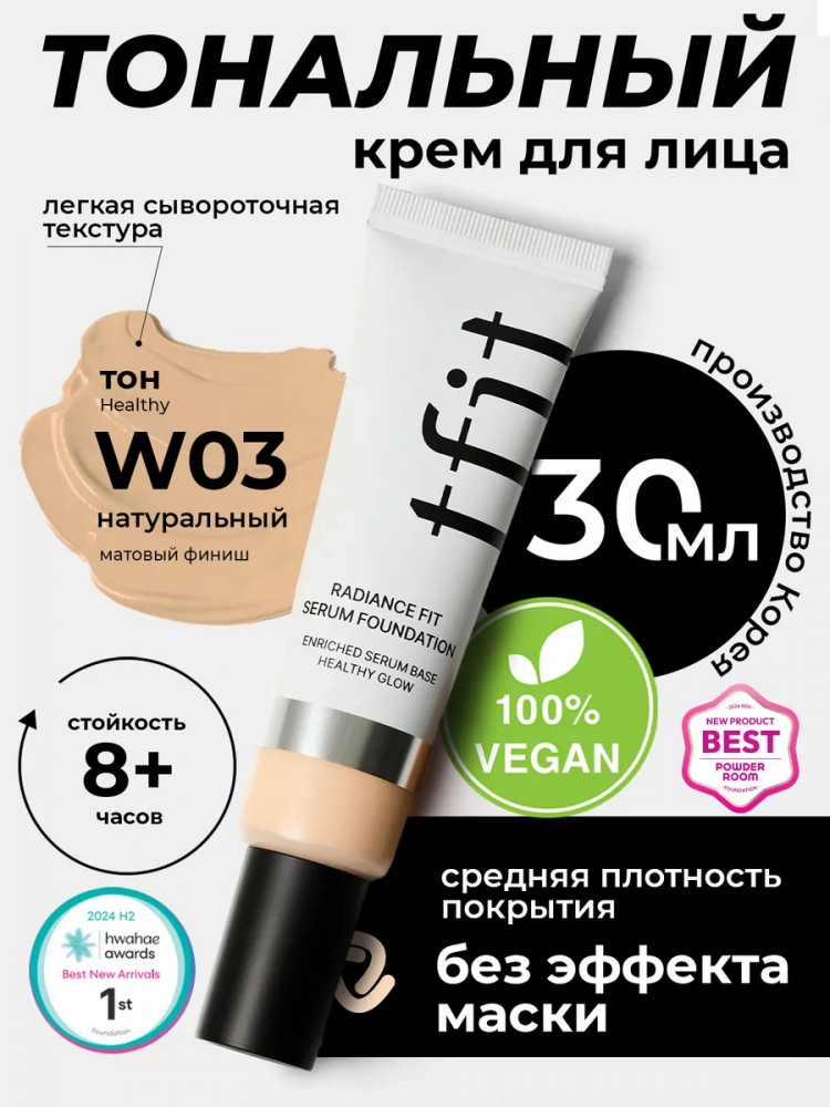 TFIT Тональный флюид увлажняющий «Radiance Fit Serum Foundation Tfit», оттенок W03 Healthy