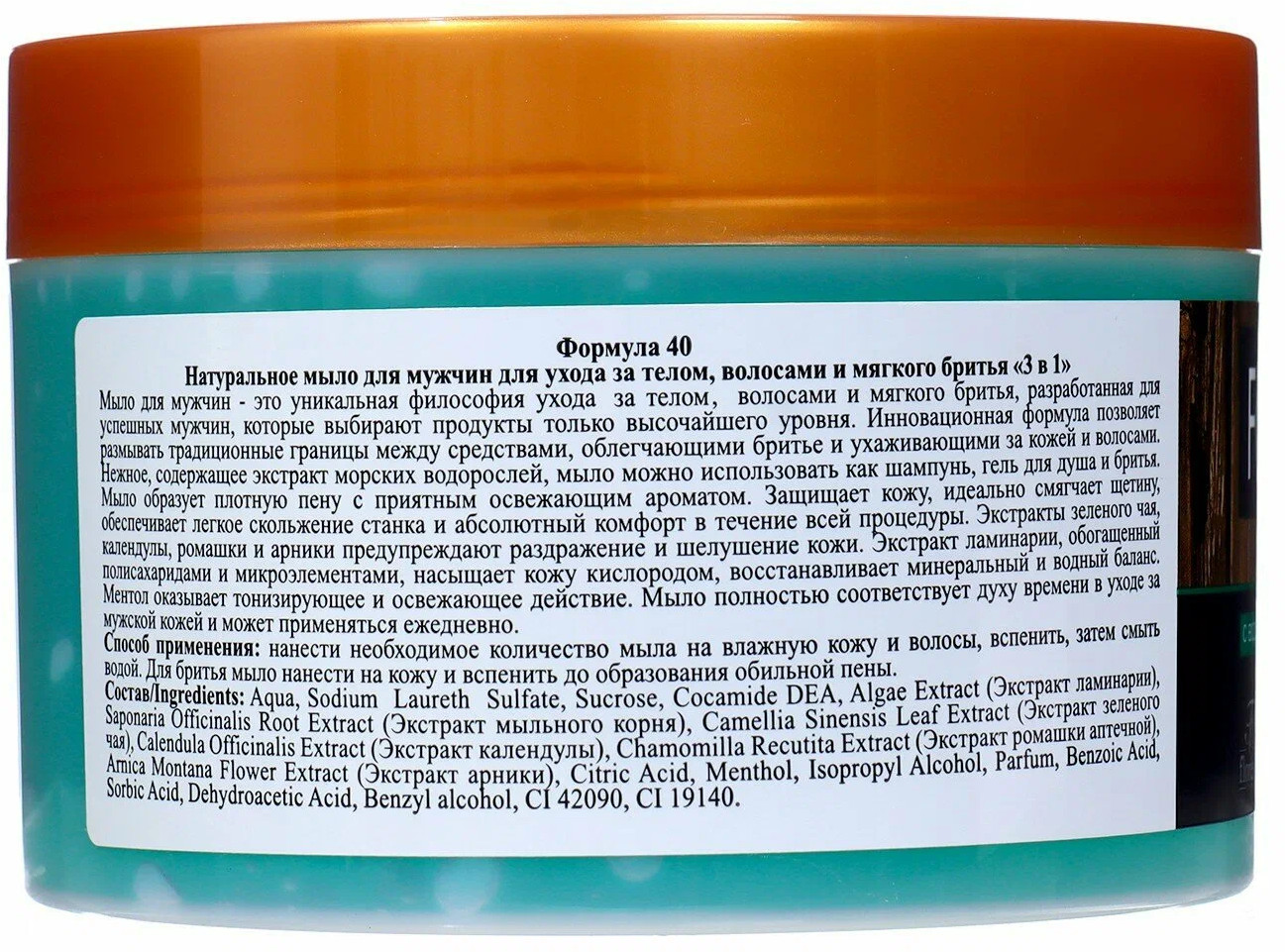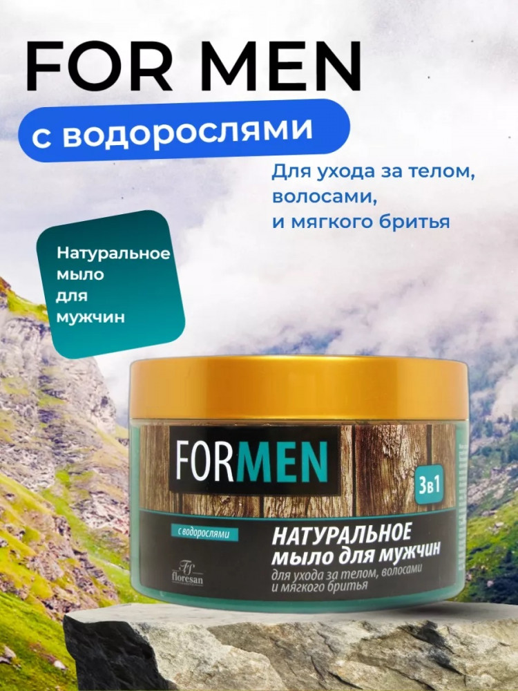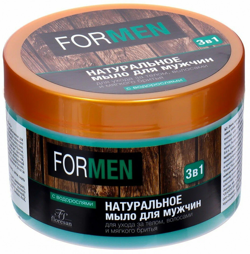 Floresan Мыло натуральное мужское для ухода за телом, волосами и мягкого бритья «3 в 1»