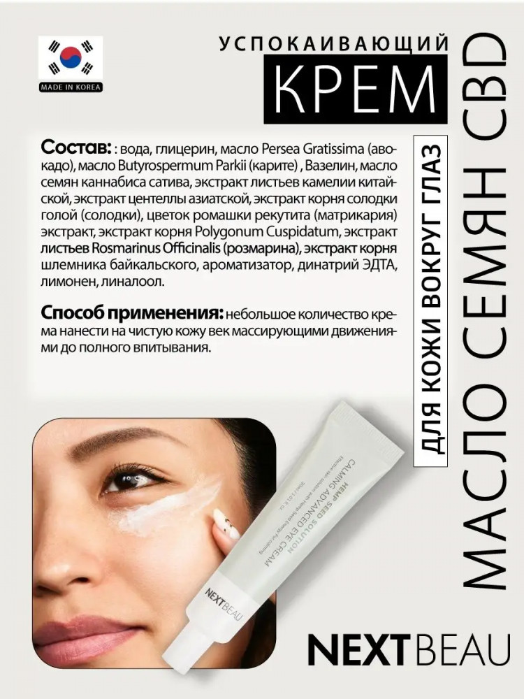 Nextbeau Крем для кожи вокруг глаз успокаивающий с маслом семян конопли «Calming Advanced Eye Cream»