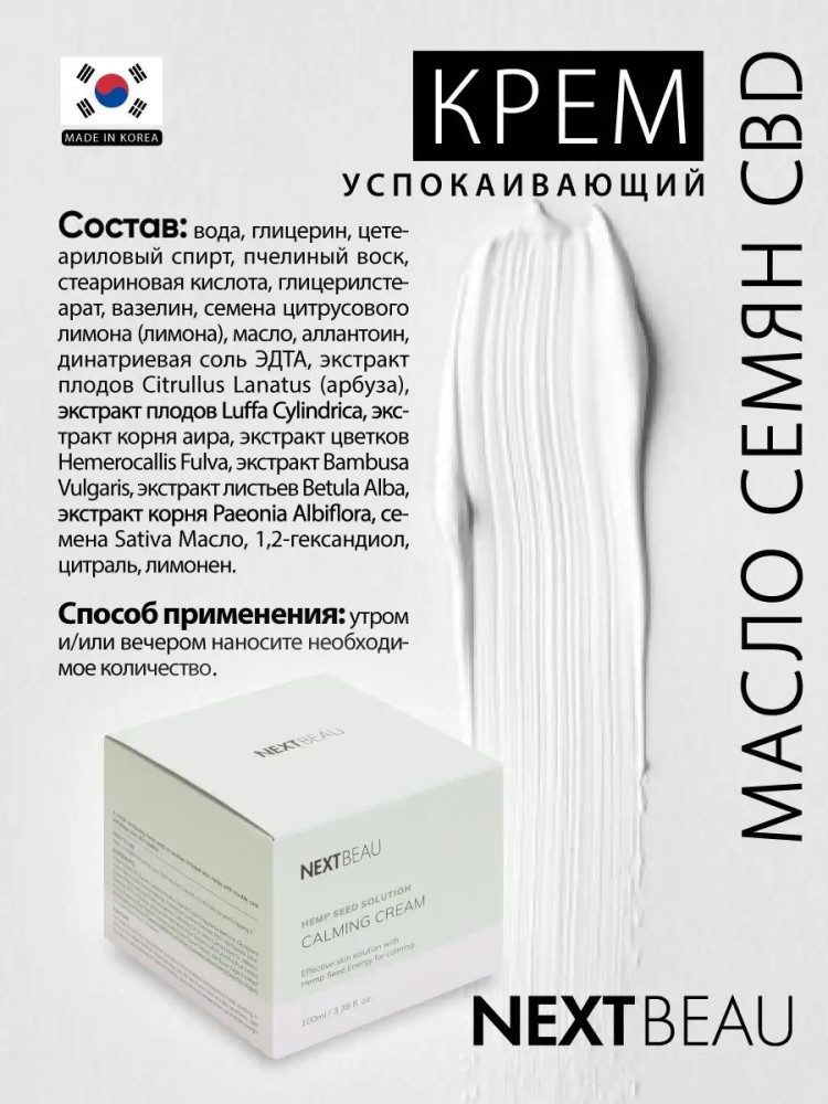 Nextbeau Крем для лица успокаивающий с маслом семян конопли «Calming Cream»