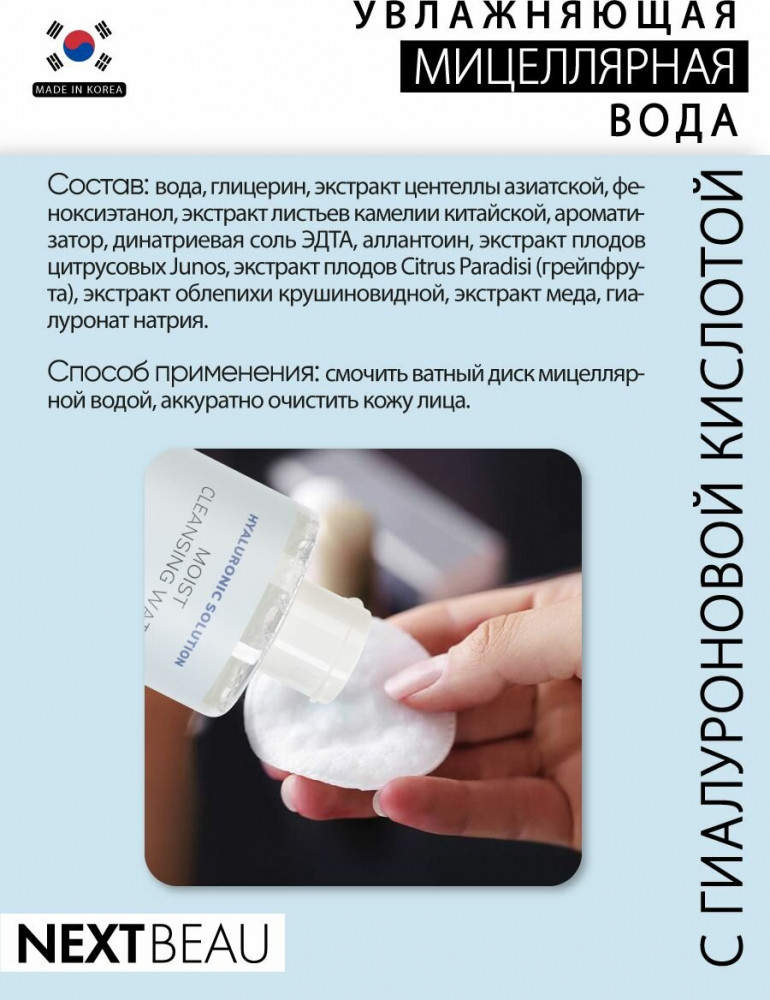 Nextbeau Мицеллярная вода ультраувлажняющая с гиалуроновой кислотой «Moist Cleansing Water»