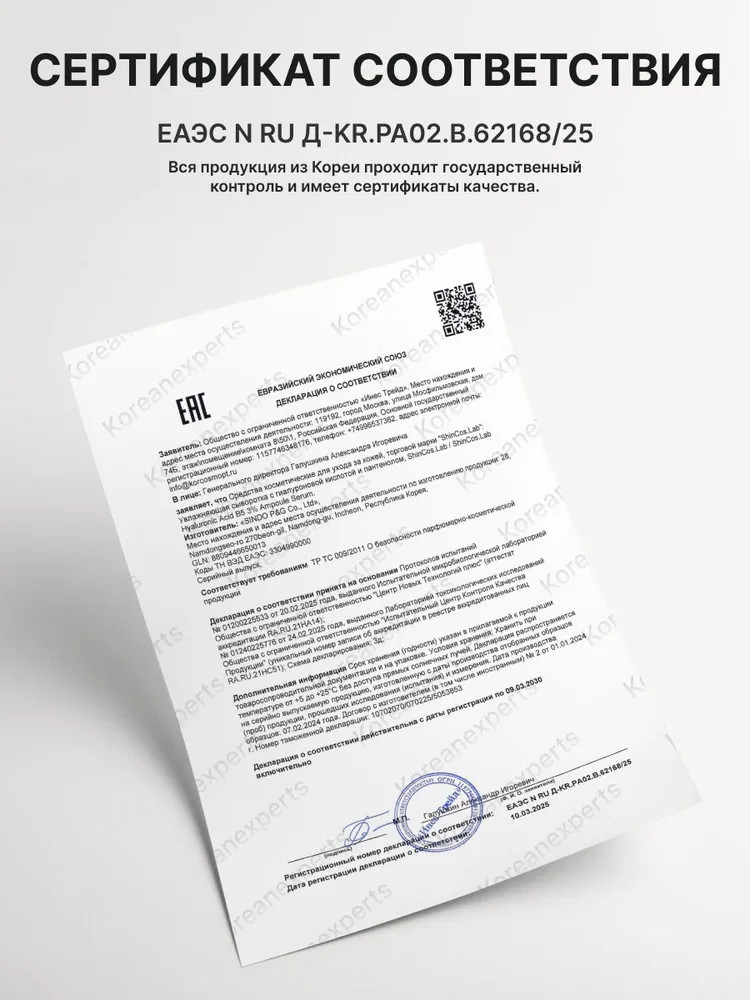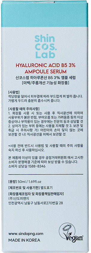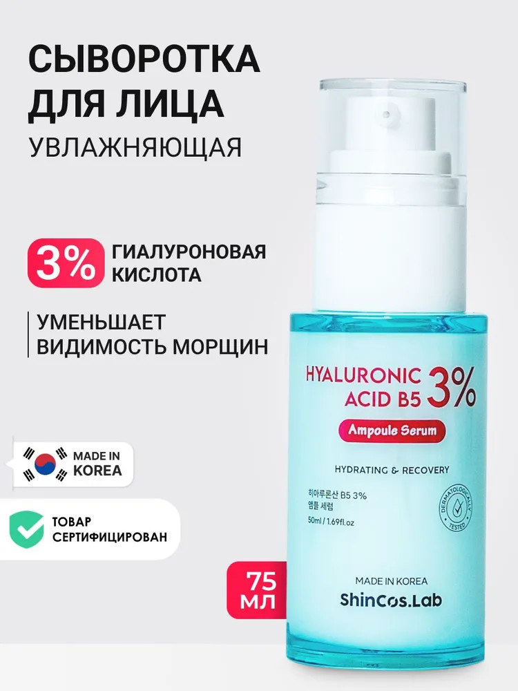 ShinCos.Lab Сыворотка для лица с гиалуроновой кислотой и пантенолом увлажняющая «Hyaluronic Acid B5 3% Ampoule Serum»