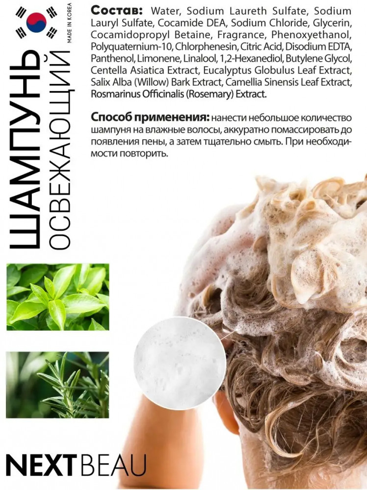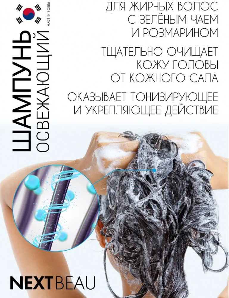 Nextbeau Шампунь против перхоти с зелёным чаем и розмарином «Shampoo Fresh Scalp Anti-Dandruff»