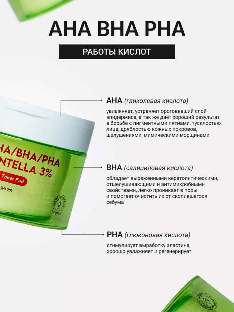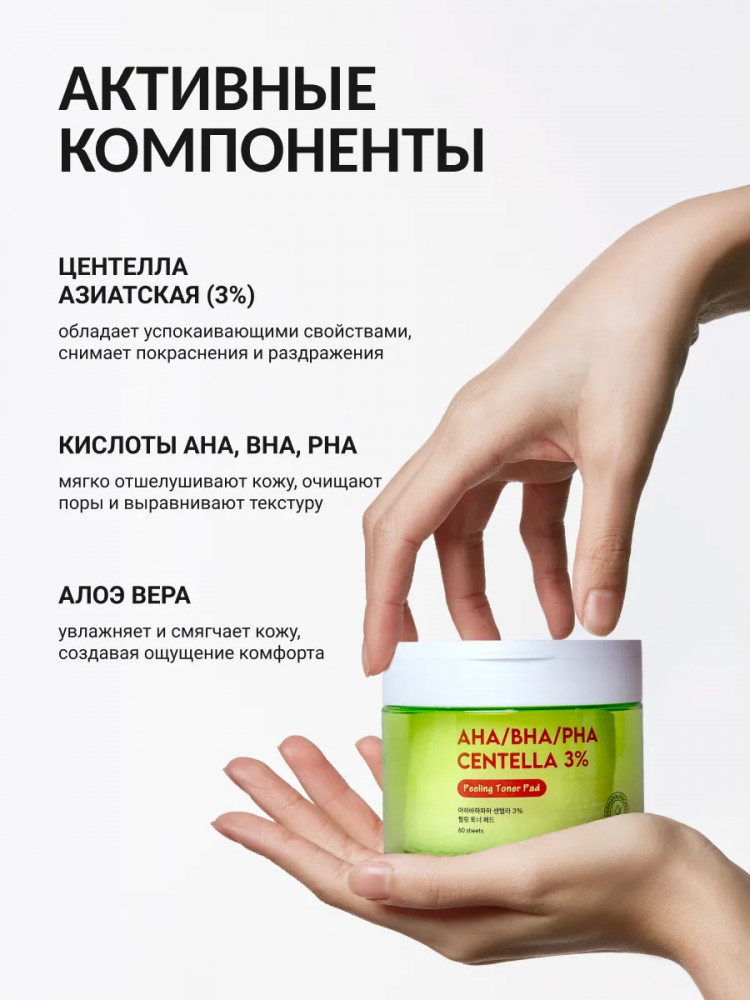 Отзывы «Пилинг-пэды с 3 видами кислот и центеллой азиатской очищающие «AHA/BHA/PHA Centella 3% Toner Pad»»