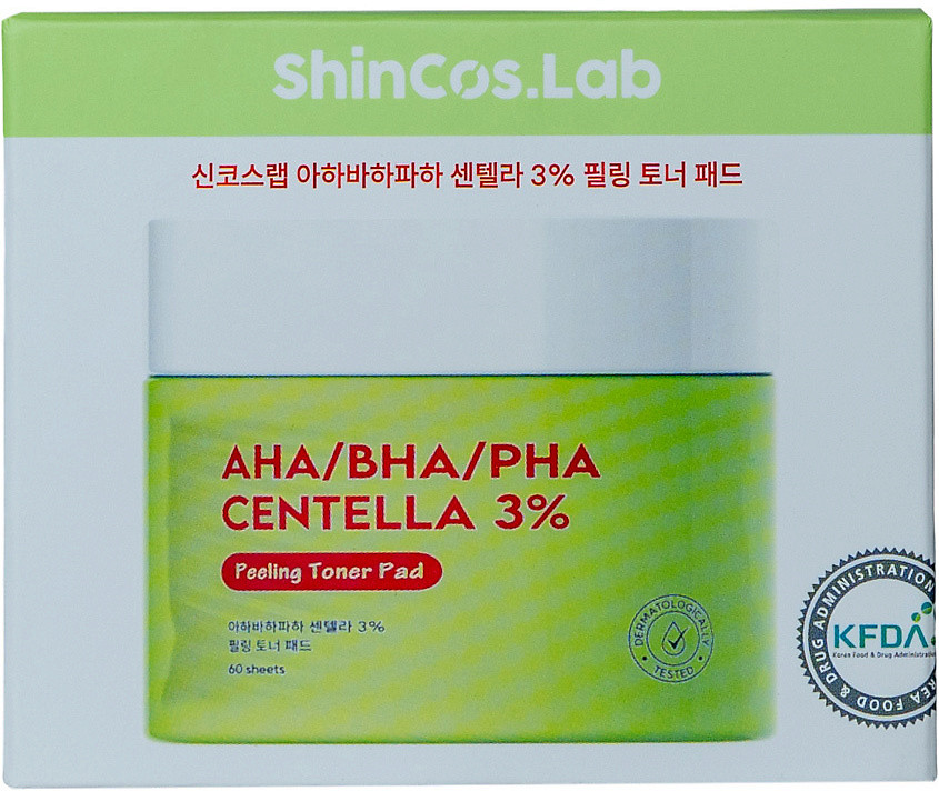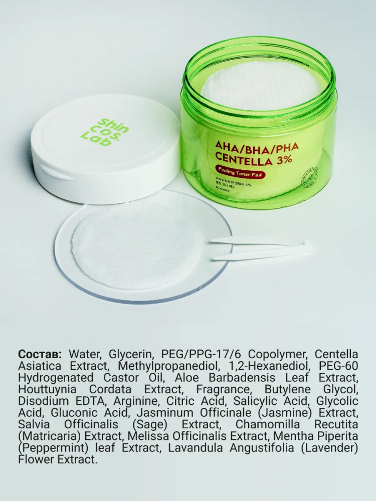 ShinCos.Lab Пилинг-пэды с 3 видами кислот и центеллой азиатской очищающие «AHA/BHA/PHA Centella 3% Toner Pad»