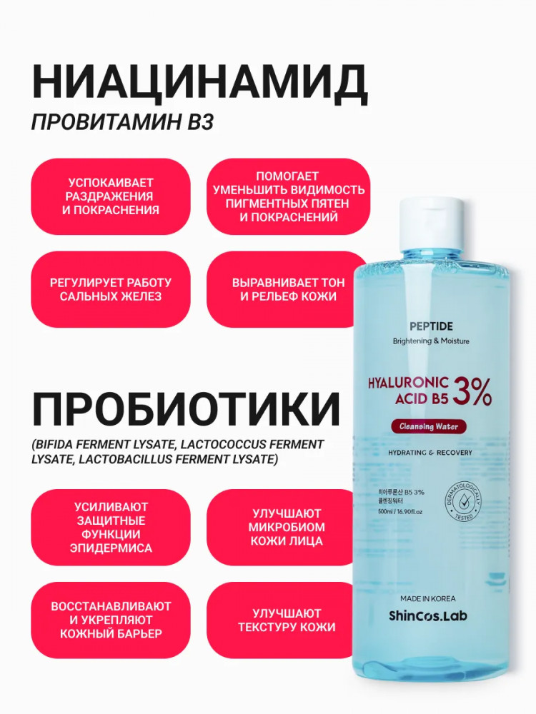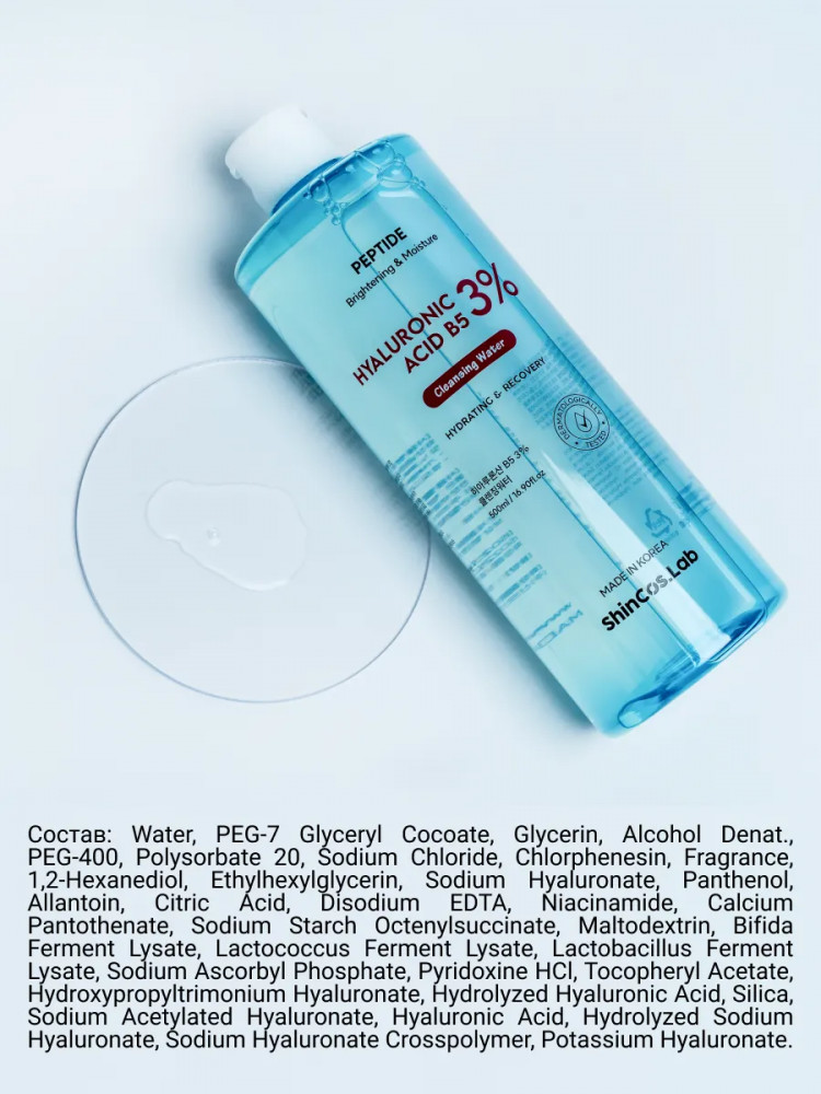 ShinCos.Lab Мицеллярная вода с гиалуроновой кислотой и пантенолом увлажняющая «Hyaluronic Acid B5 3% Cleansing Water»