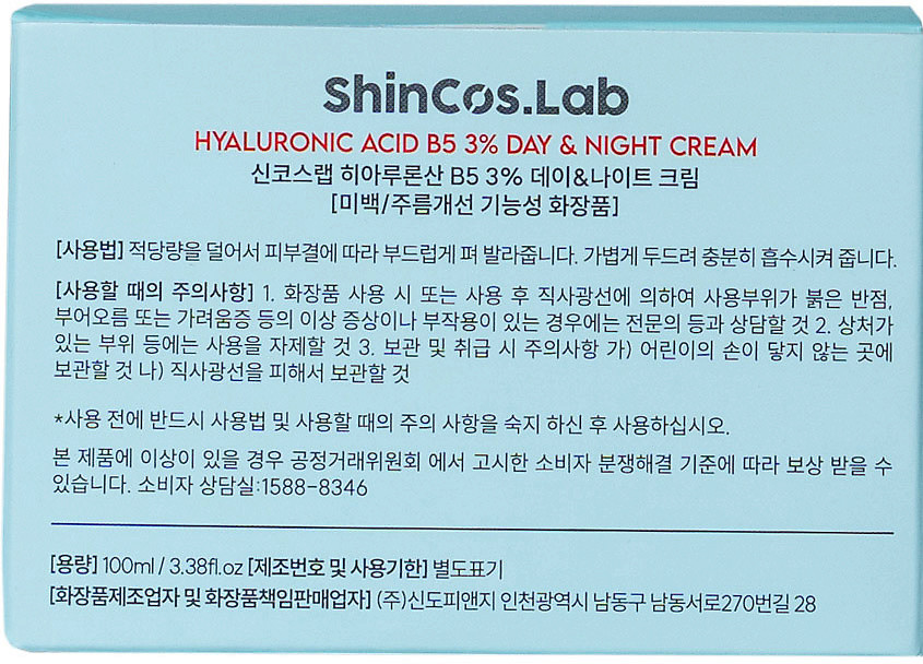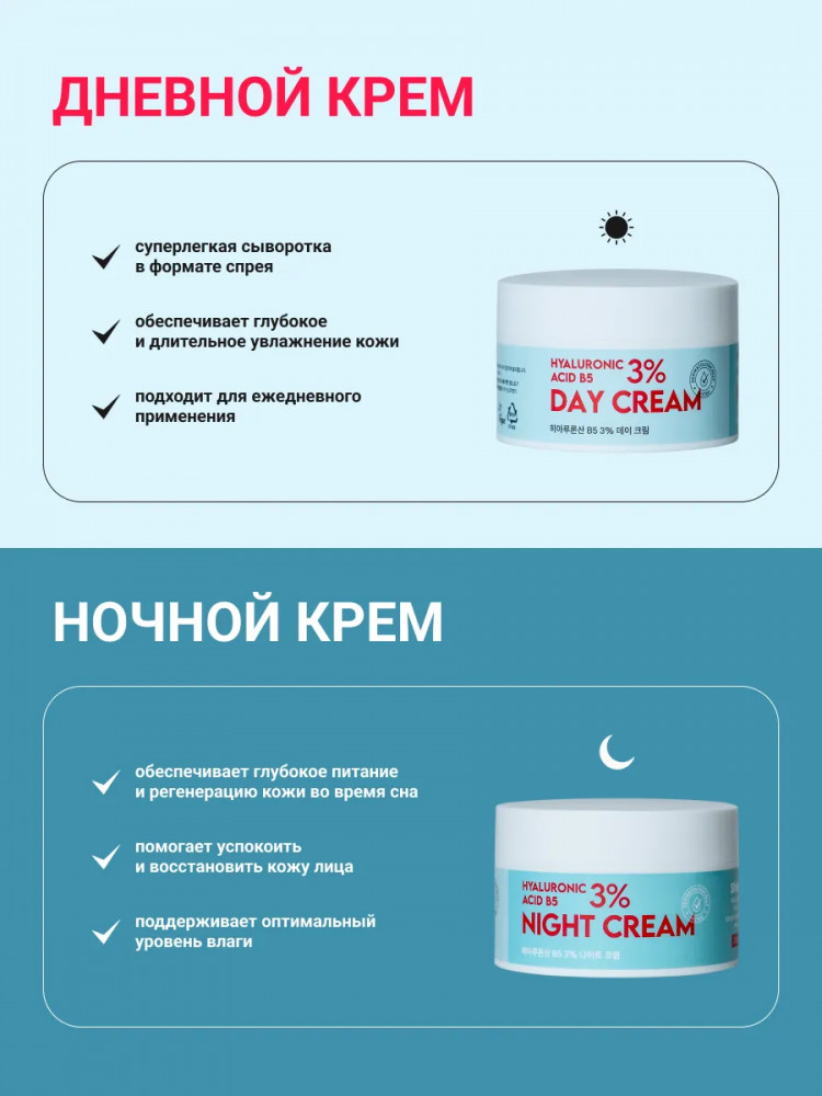 ShinCos.Lab Крем для лица с гиалуроновой кислотой и пантенолом дневной и ночной 2 в 1 «Hyaluronic Acid B5 3% Day and Night Creams»