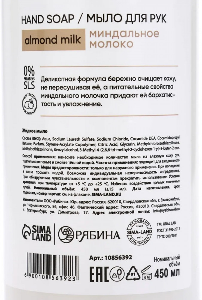 Ural lab Мыло для рук жидкое с ароматом миндального молока