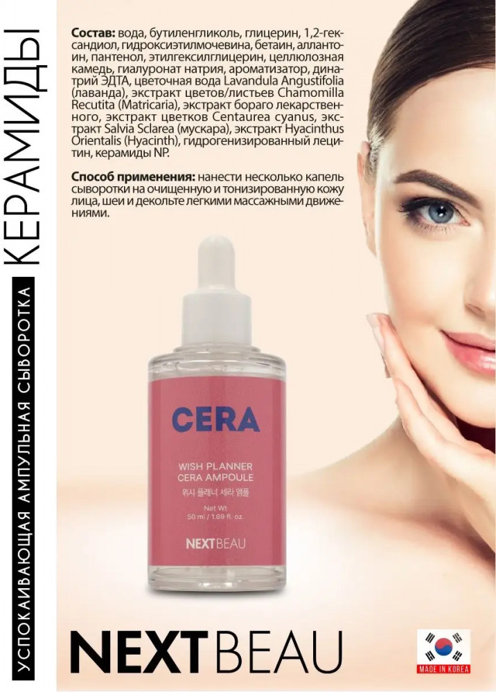 Nextbeau Сыворотка для чувствительной кожи успокаивающая с керамидами «Cera Ampoule»