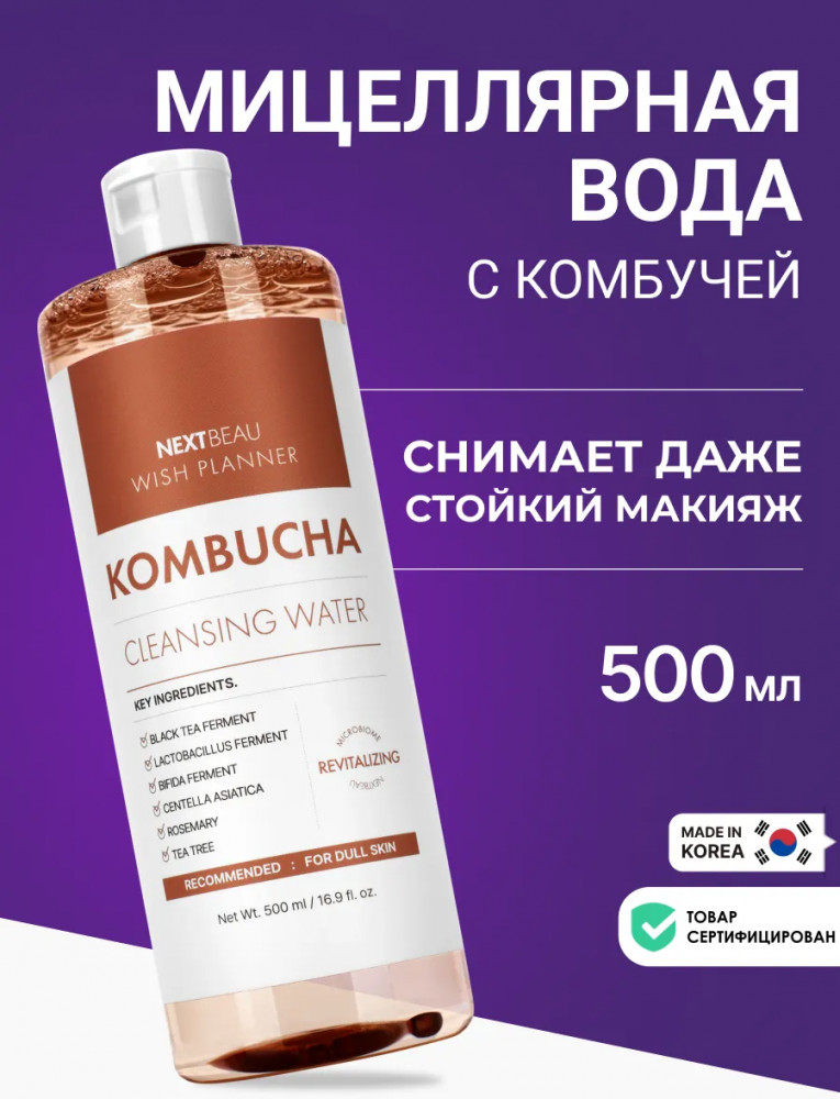 Nextbeau Мицеллярная вода с комбучей, пробиотиками и экстрактом чайного дерева «Kombucha Biome Cleansing Water»