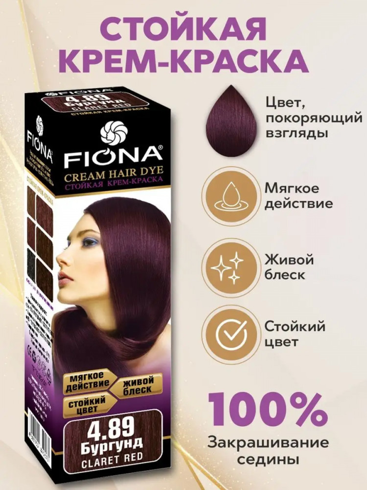 Fiona Крем-краска для волос стойкая, оттенок 4.89 Бургунд