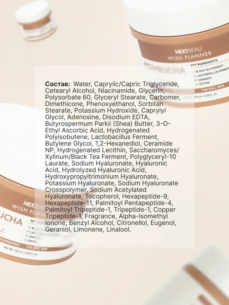 Nextbeau Крем для лица с комбучей, пробиотиками и гиалуроновой кислотой «Kombucha Biome Cream»