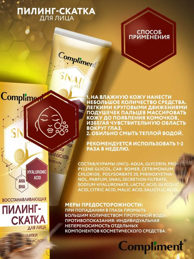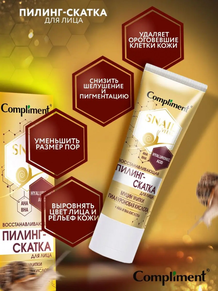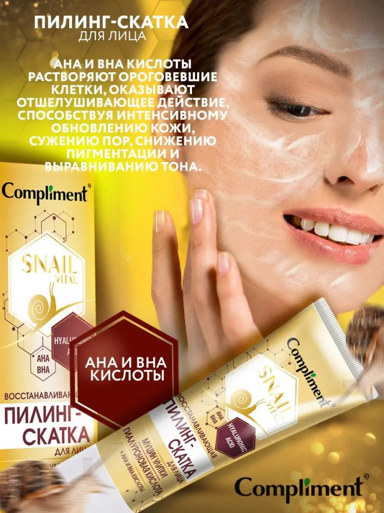Compliment Пилинг-скатка для лица с муцином улитки восстанавливающая