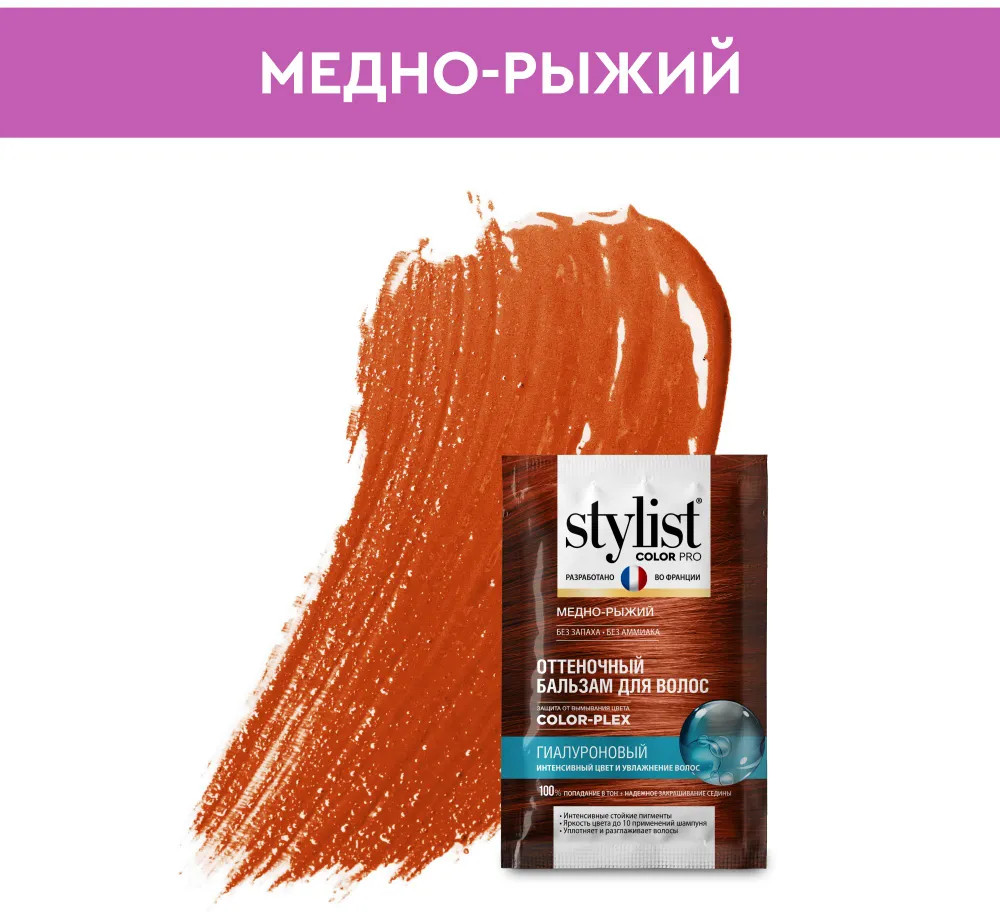 Stylist Color Pro Бальзам для волос оттеночный гиалуроновый, оттенок Медно-рыжий