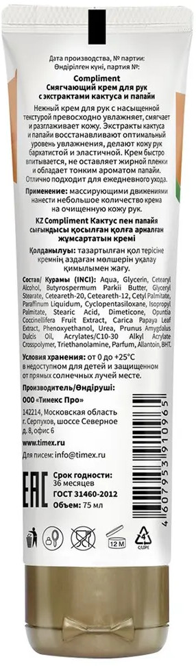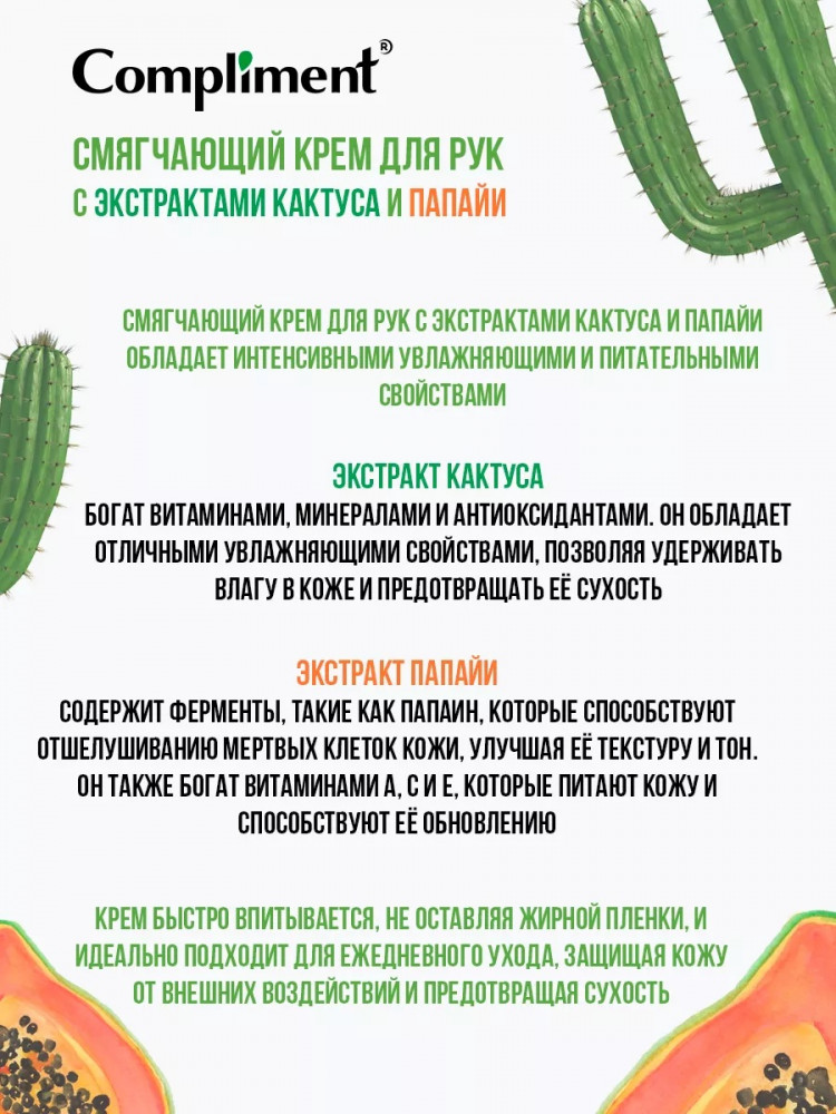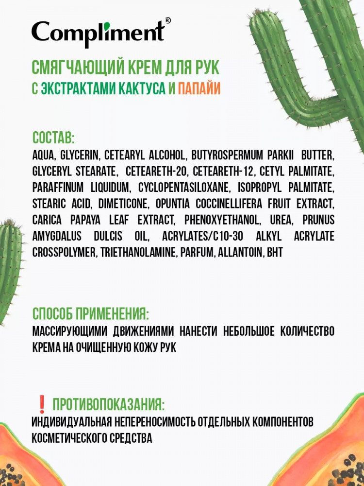 Compliment Крем для рук смягчающий «Кактус & Папайя»