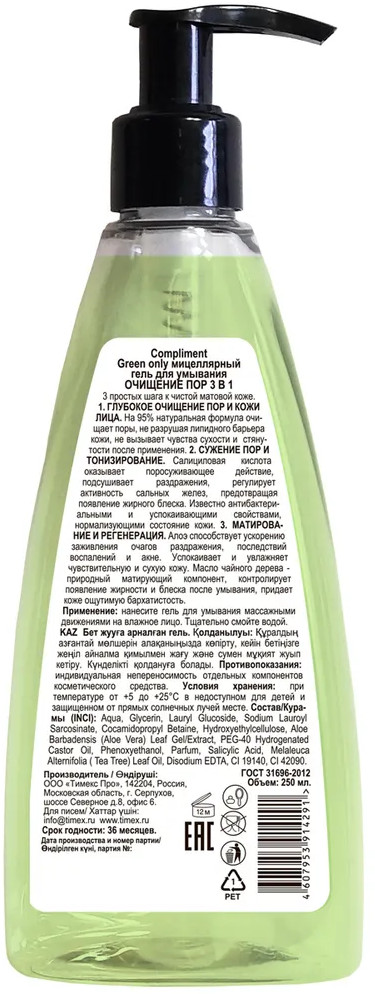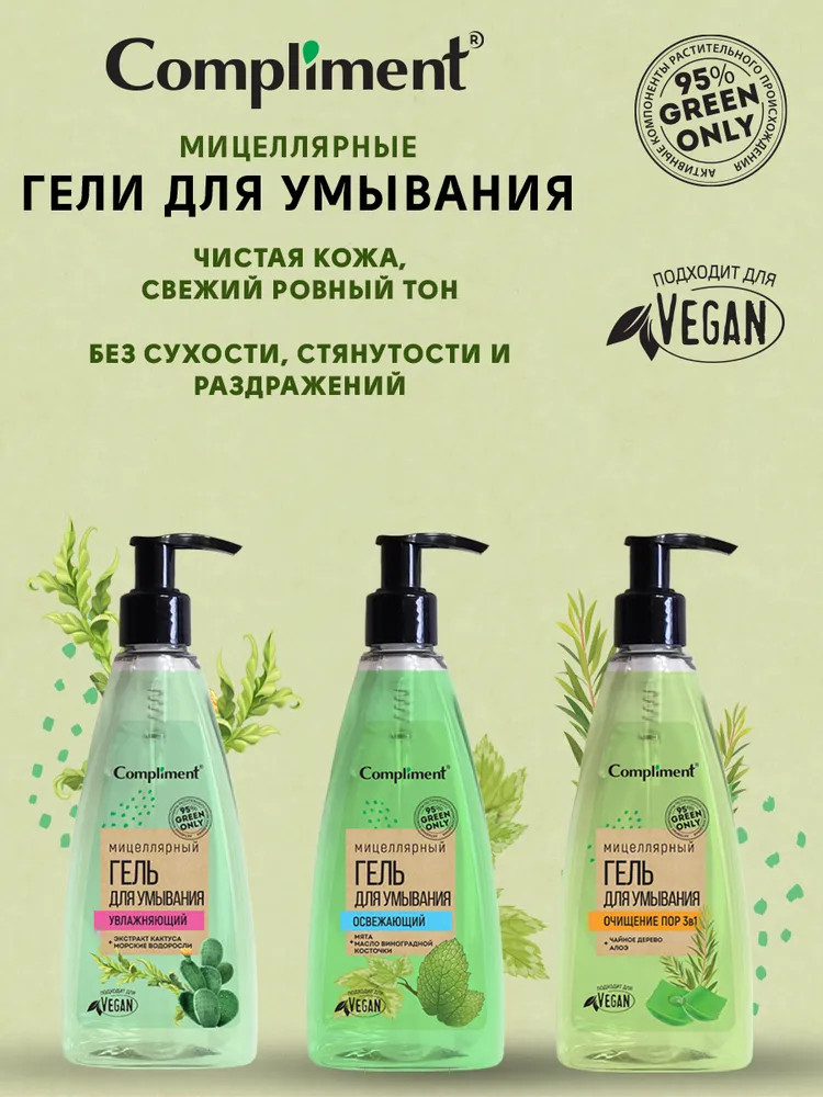 Compliment Гель для умывания лица мицеллярный «3 в 1. Очищение пор»