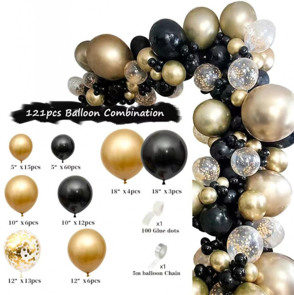 Фотозона из набора воздушных шаровВ данный момент этот товар отсутствует в продаже. Возможно, у нас найдется аналогичный или похожий товар здесь. Набор шаров для оформления (121 шт.) в чёрно-золотой гамме создаст яркое и стильное оформление для праздника. Идеально подойдёт для дня рождения, свадьбы, фотозоны, корпоратива или вечеринки в чёрно-золотом стиле. |