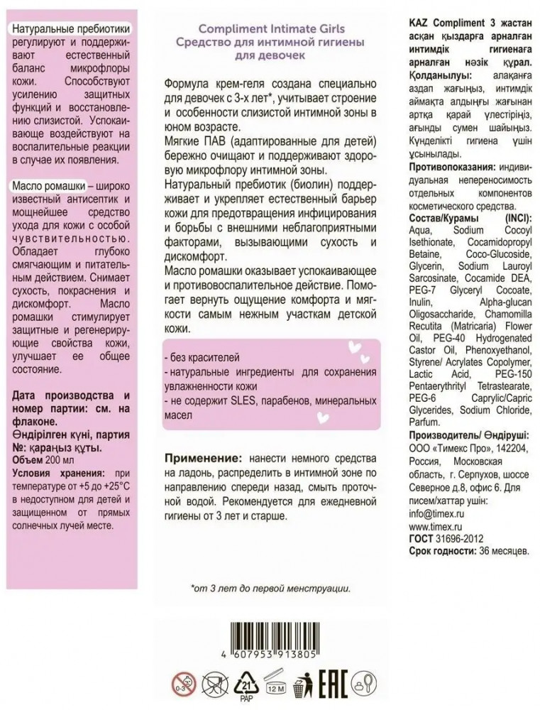 Compliment Средство для интимной гигиены для девочек «Мягкое»