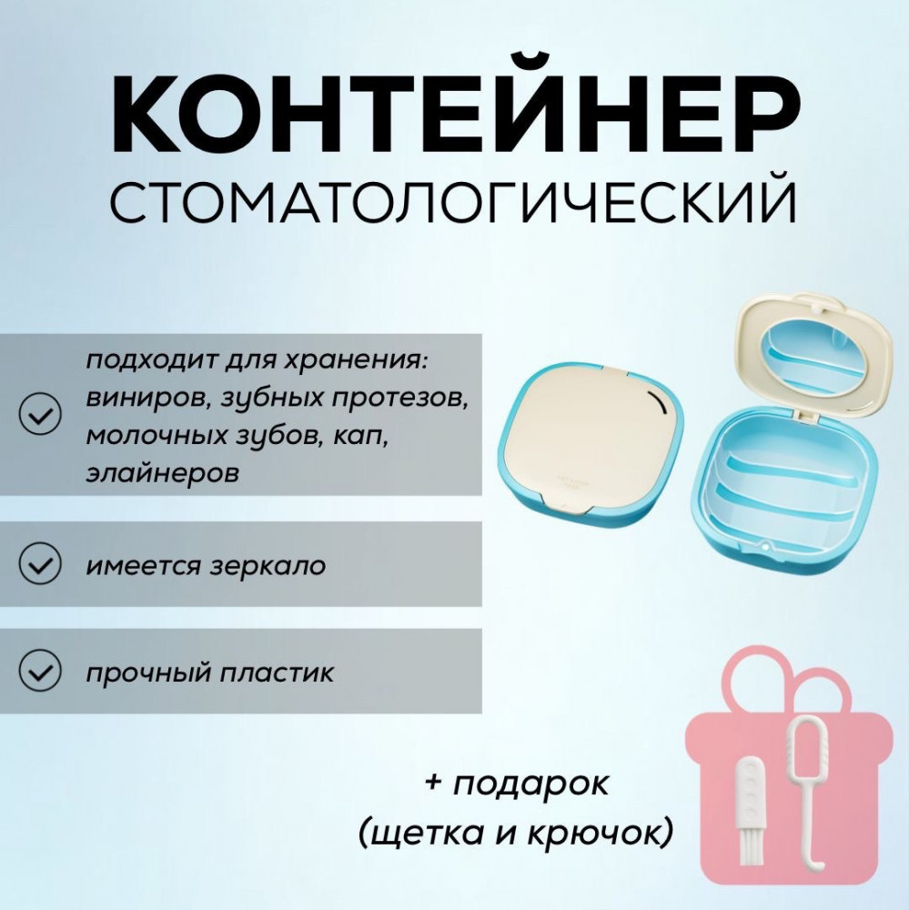 💳 Оплатить за товар можно при получении 🇰🇿 Есть бесплатная доставка по Казахстану от 1 дня 🎁 Копите бонусы с каждой покупки Стоматологический контейнер — это специализированное изделие, предназначенное для хранения и транспортировки кап, виниров, зубных протезов. Он может быть выполнен из различных материалов, таких как пластик или металл, и часто обладает функциями защиты от загрязнений и микробов. Контейнер имеет пластиковое зеркало, которое крепится на самоклеящейся основе. |