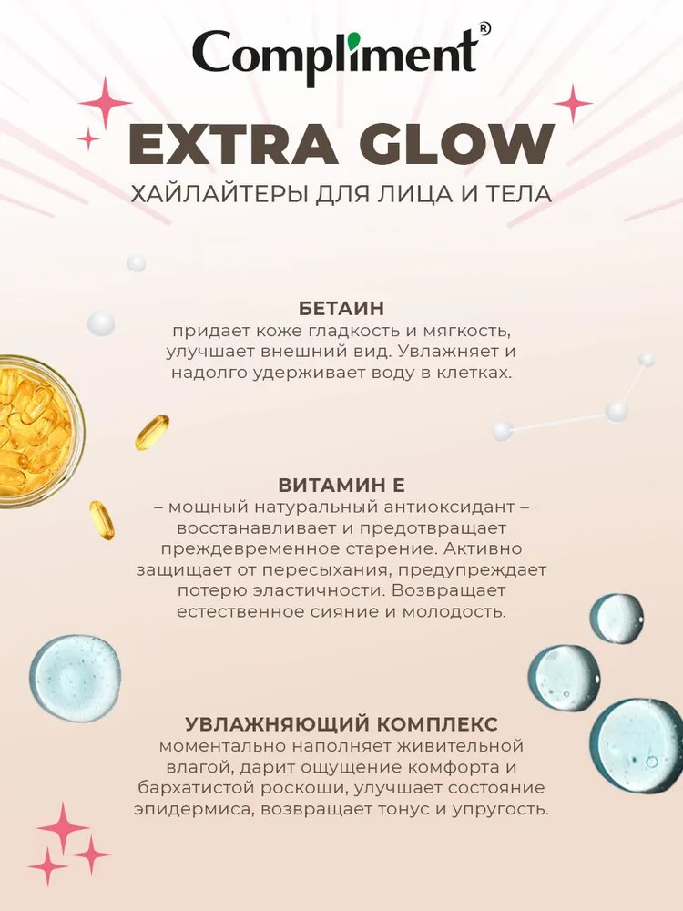 Compliment Хайлайтер для лица и тела «Extra Glow», оттенок Золотой