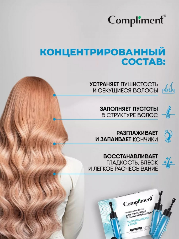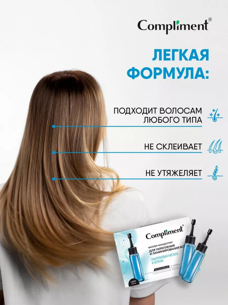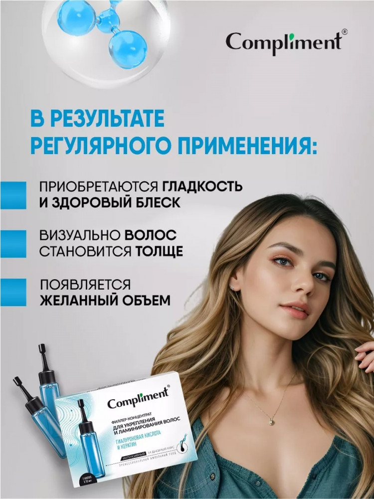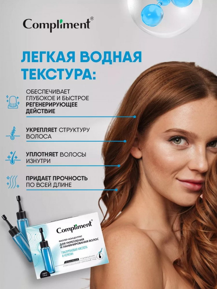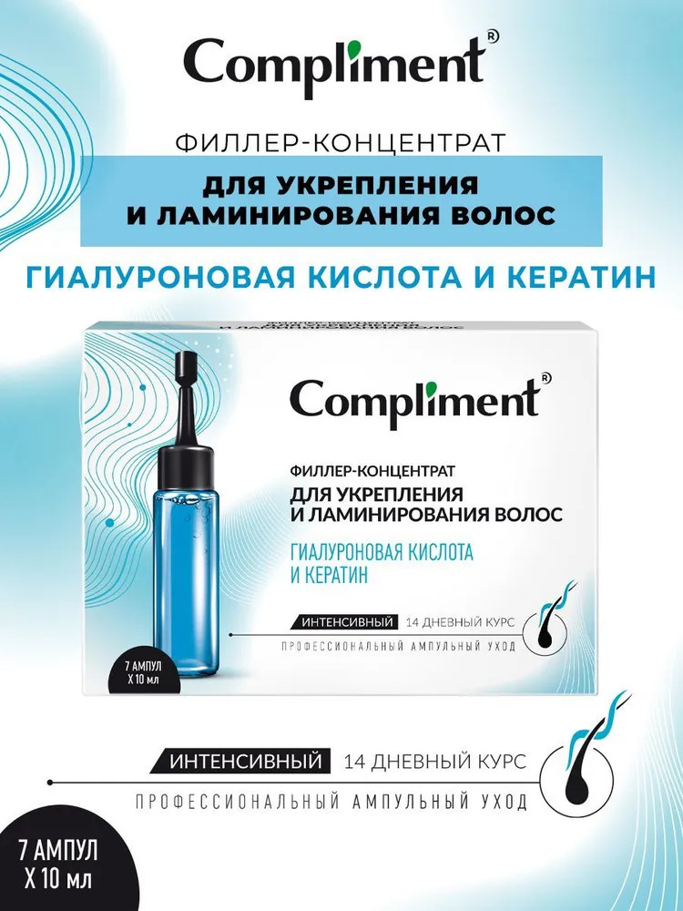 Compliment Филлер-концентрат для укрепления и ламинирования волос «Гиалуроновая кислота и Кератин»