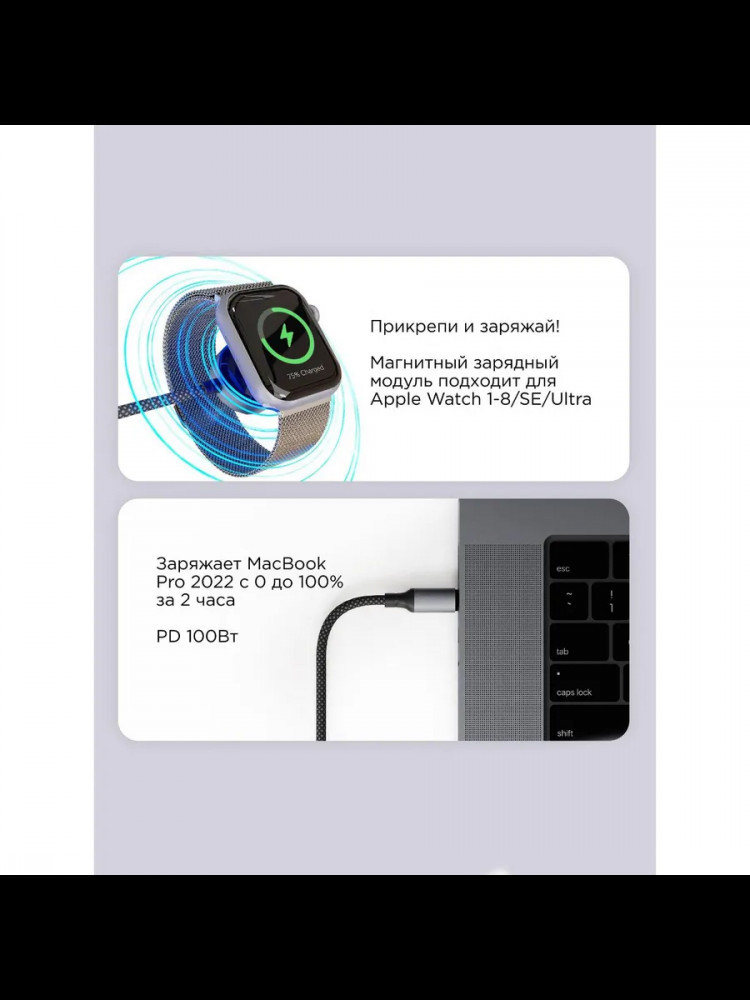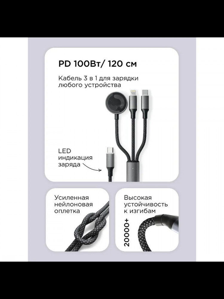 💳 Оплатить за товар можно при получении 🇰🇿 Есть бесплатная доставка по Казахстану от 1 дня 🎁 Копите бонусы с каждой покупки Универсальный кабель VLP 3 в 1 (USB-C—USB-C + Lightning + магнитная зарядка для Apple Watch), 1.2 м — идеальное решение для современных пользователей. Забудьте о множестве проводов и адаптеров, занимающих все розетки. Этот кабель объединяет три функции в одном устройстве: разъёмы Type-C, Lightning и магнитную платформу для зарядки Apple Watch. Он совместим с iPhone, iPad, AirPods, Apple Watch, Android-устройствами с Type-C и другими гаджетами. |