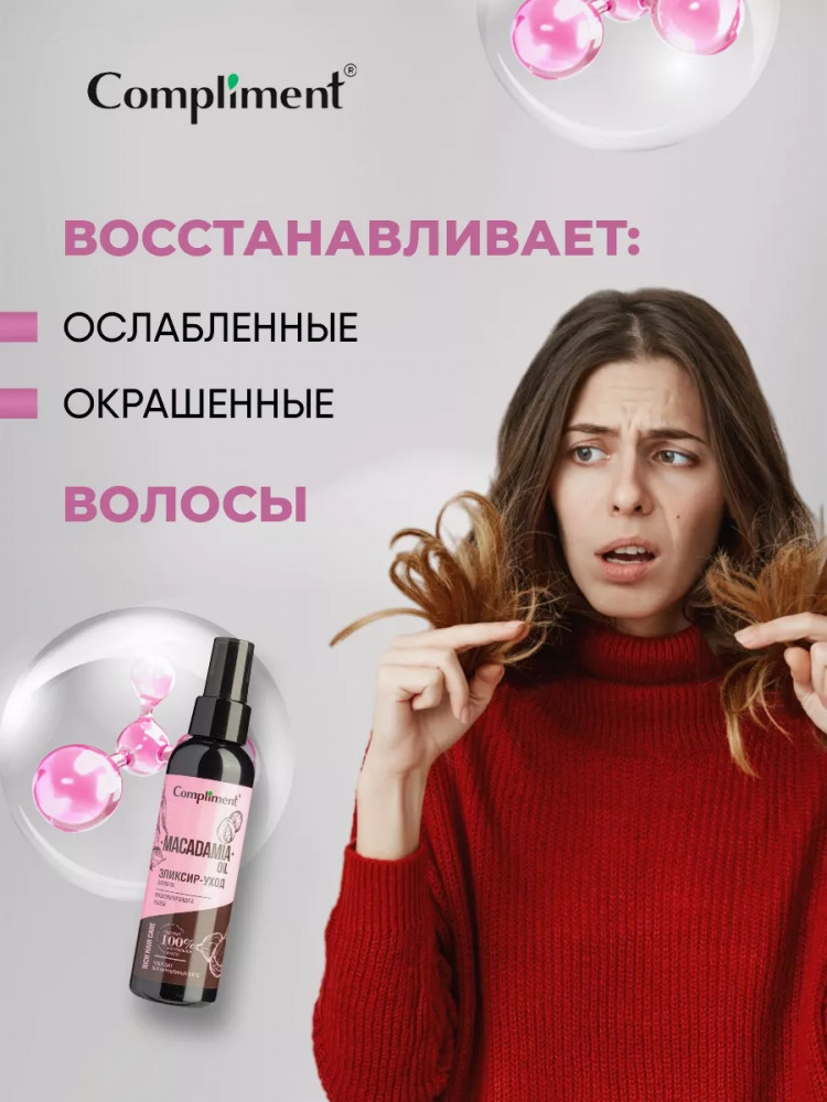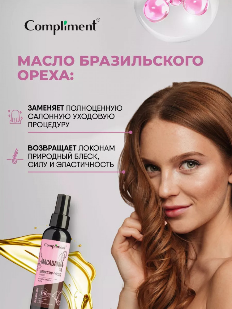 Compliment Эликсир-уход для волос «Macadamia Oil. Интенсивная защита и блеск»