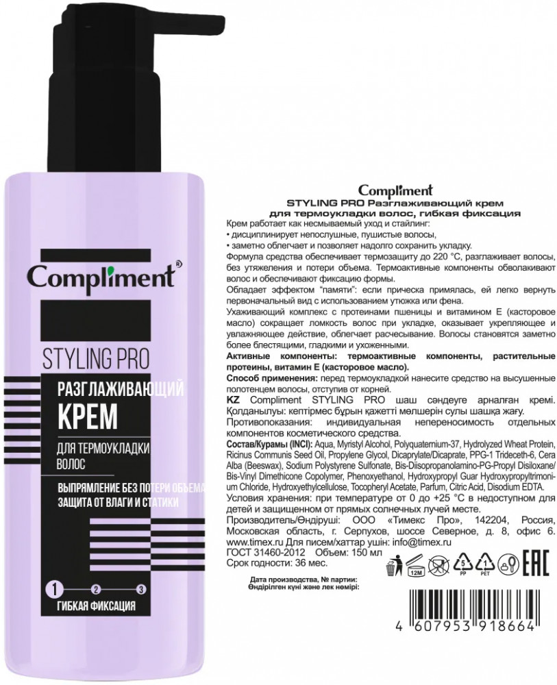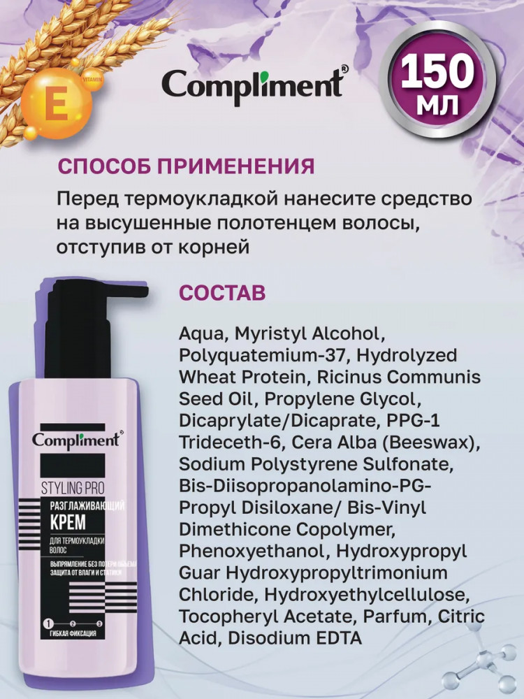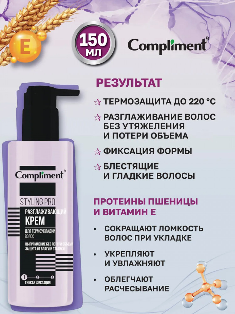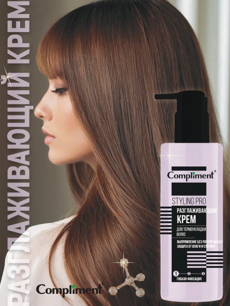 Compliment Крем для термоукладки волос разглаживающий «Гибкая фиксация»-20% +55
