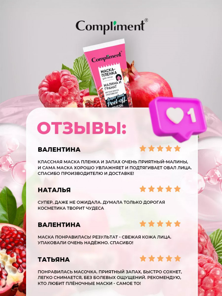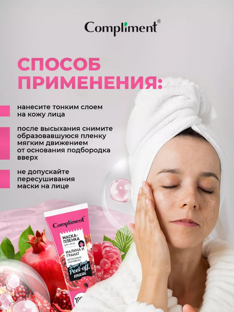 Compliment Маска-пленка для лица «Малина и гранат. Интенсивное омоложение»