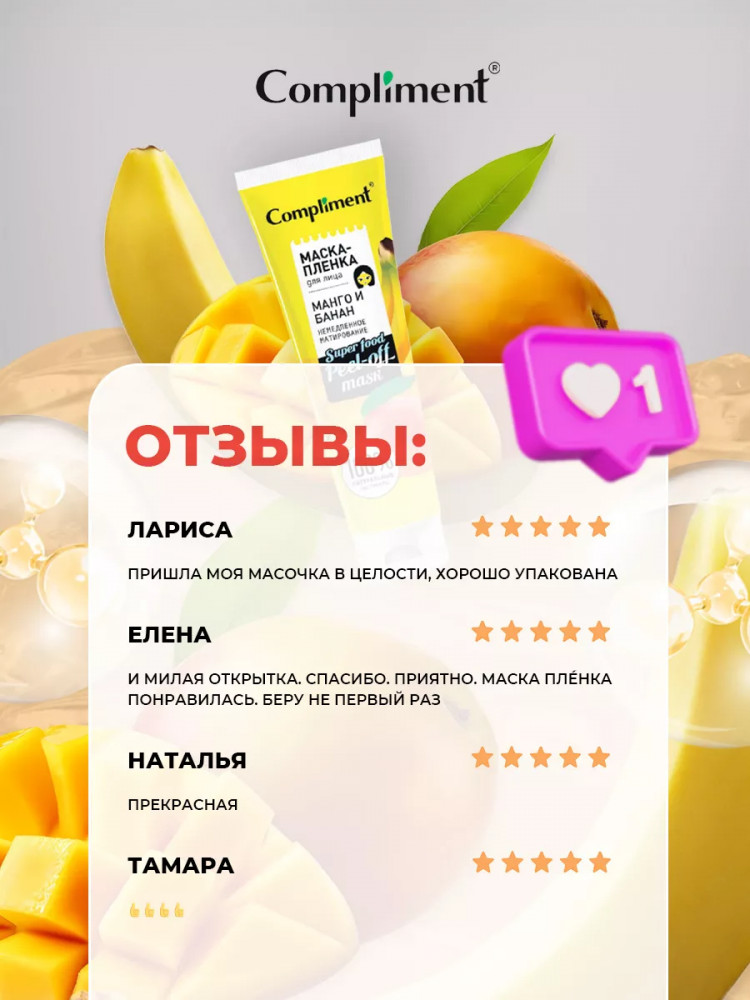 Compliment Маска-пленка для лица «Манго и банан. Немедленное матирование»