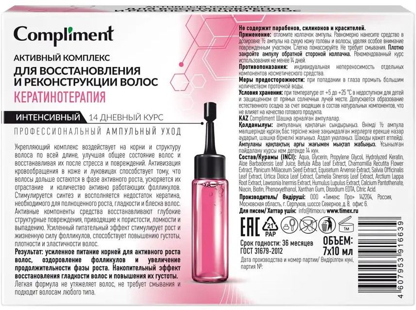 Compliment Активный комплекс для восстановления и реконструкции волос «Кератинотерапия»